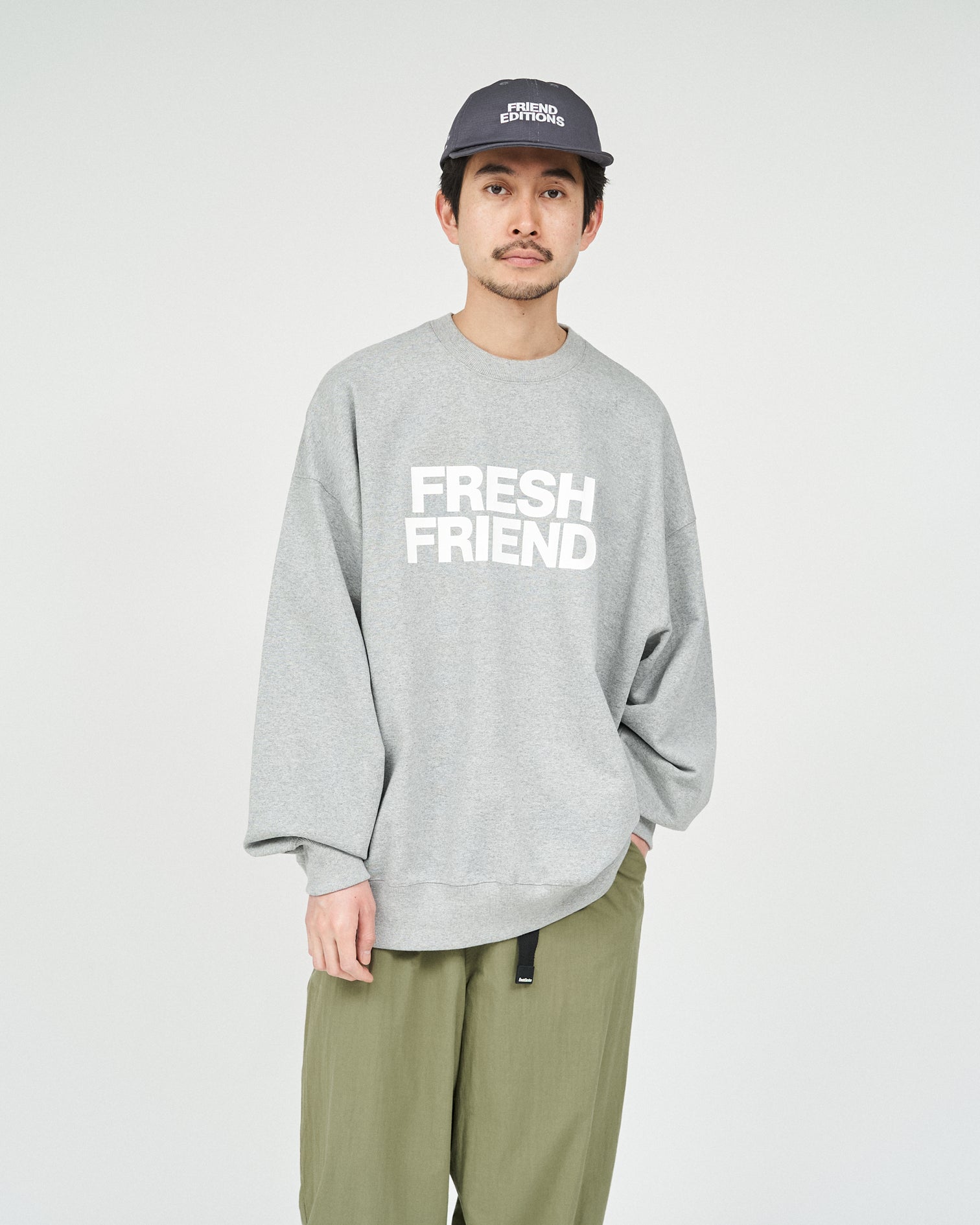 A sweatshirt pullover born from a collaboration between FRIEND EDITIONS and FreshService. With the keywords "FRESH FRIEND" boldly printed on the front and "SERVICE EDITIONS" on the back, this piece symbolizes the relationship between the two. It features a loose silhouette and naturally dropped shoulders, making it suitable for unisex wear. The simple yet assertive design also looks great with layered styles. The fleece-lined sweatshirt material is gentle on the skin and can be used for a long season, from the change of seasons to using it as an inner layer in the middle of winter. This sweatshirt will be the main focus of your styling, adding a subtle message to your daily life.