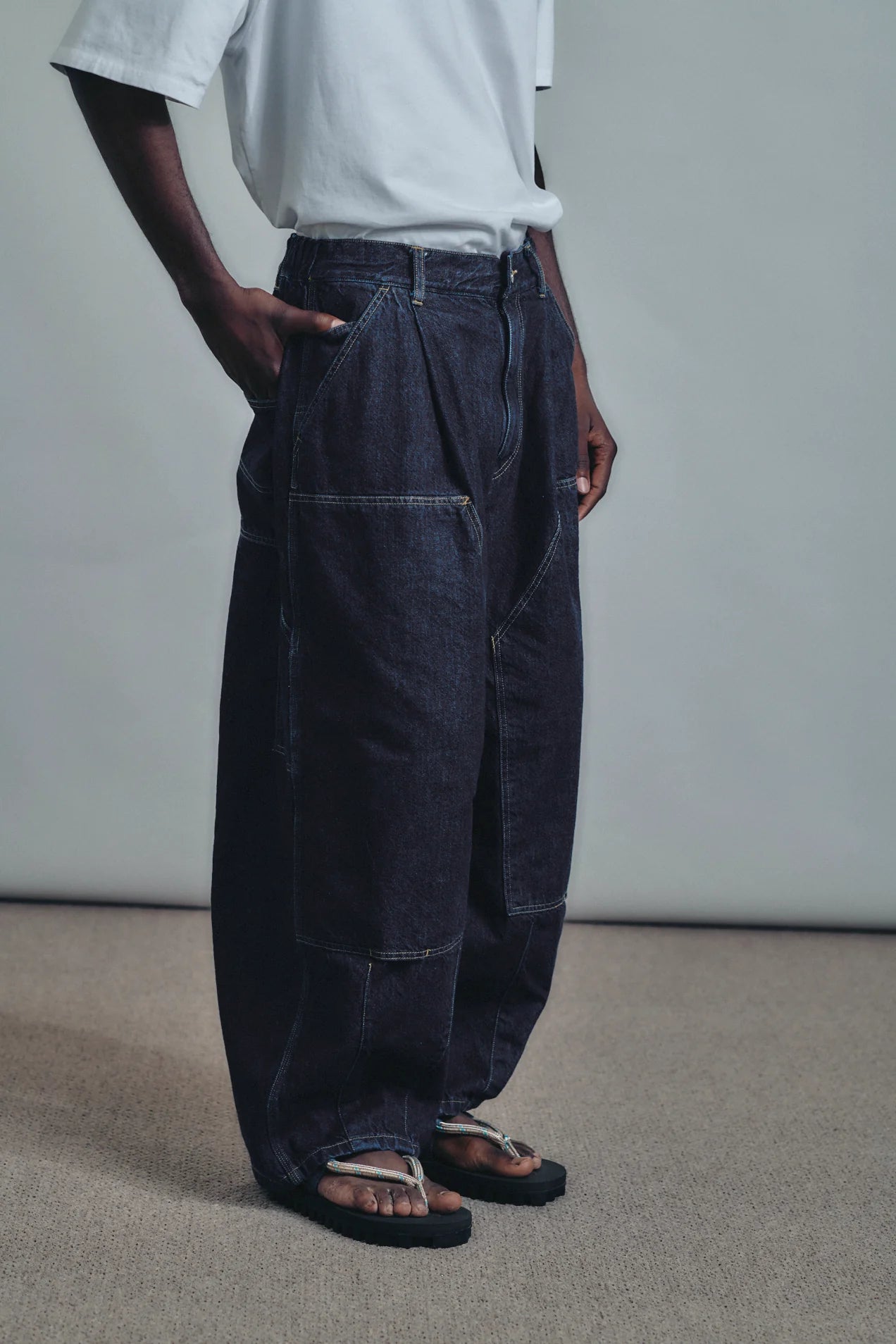 Work pants featuring double-knee reinforcement for exceptional durability. Designed with a relaxed balloon silhouette for ease of movement, tapering towards the hem to enhance comfort. Balancing fashion and functionality, this rugged piece is perfect for casual and streetwear styles, ensuring long-lasting wear.