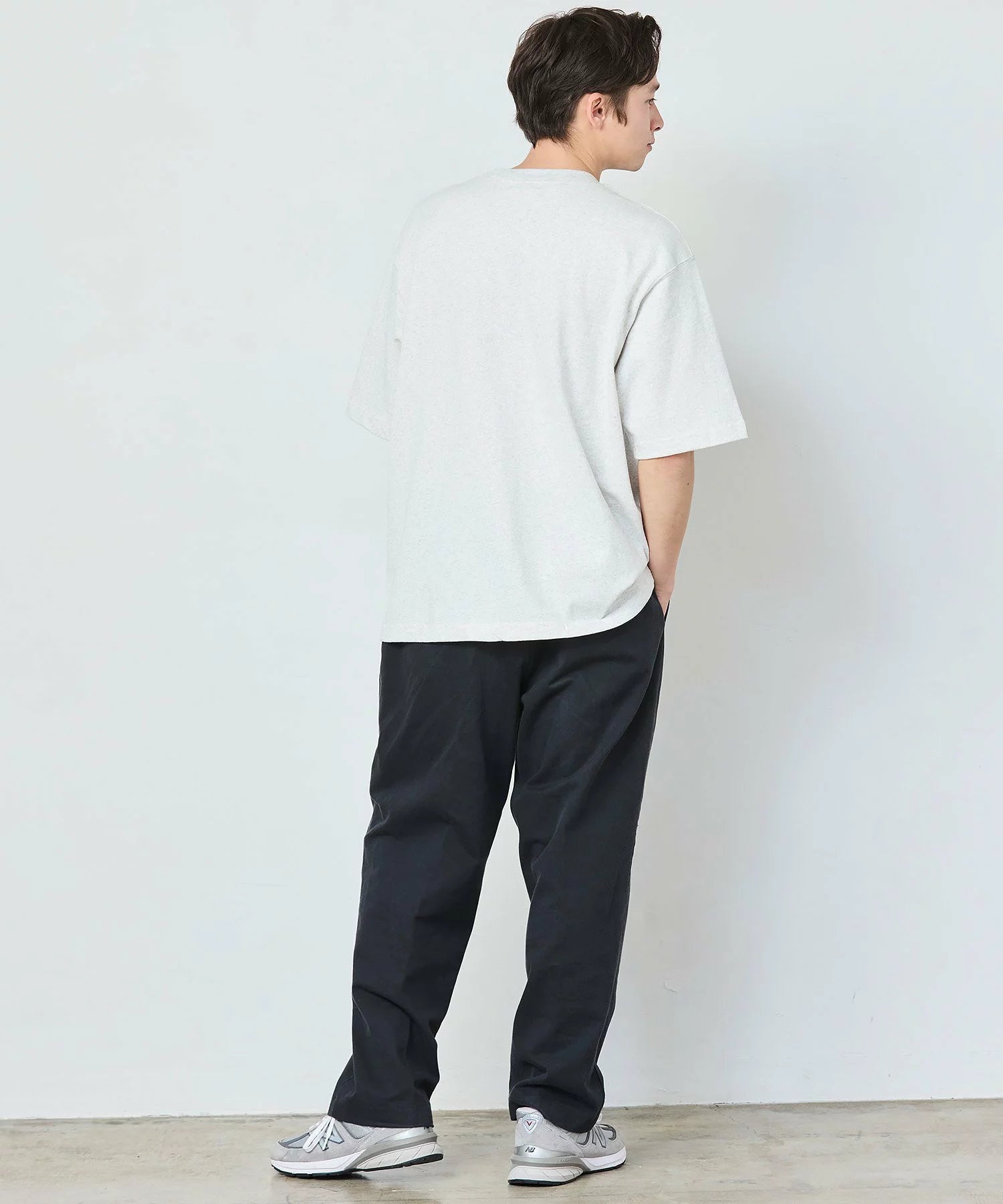 The JAPAN EDITION collection was developed by a Japanese design team to suit the climate and trends of Japan. This short-sleeved T-shirt is made from 100% USA cotton rugby jersey material. It has a moderately loose box silhouette and an embroidered logo on the left chest, and the design is simple yet includes attention to detail such as the stitching on the collar. It has been pre-washed to give it a worn-in feel.
