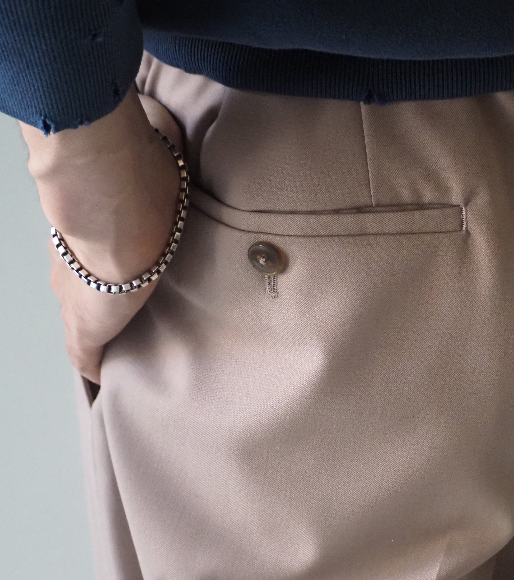 These slacks have a straight shape that will never go out of style and is a continuation of the brand.