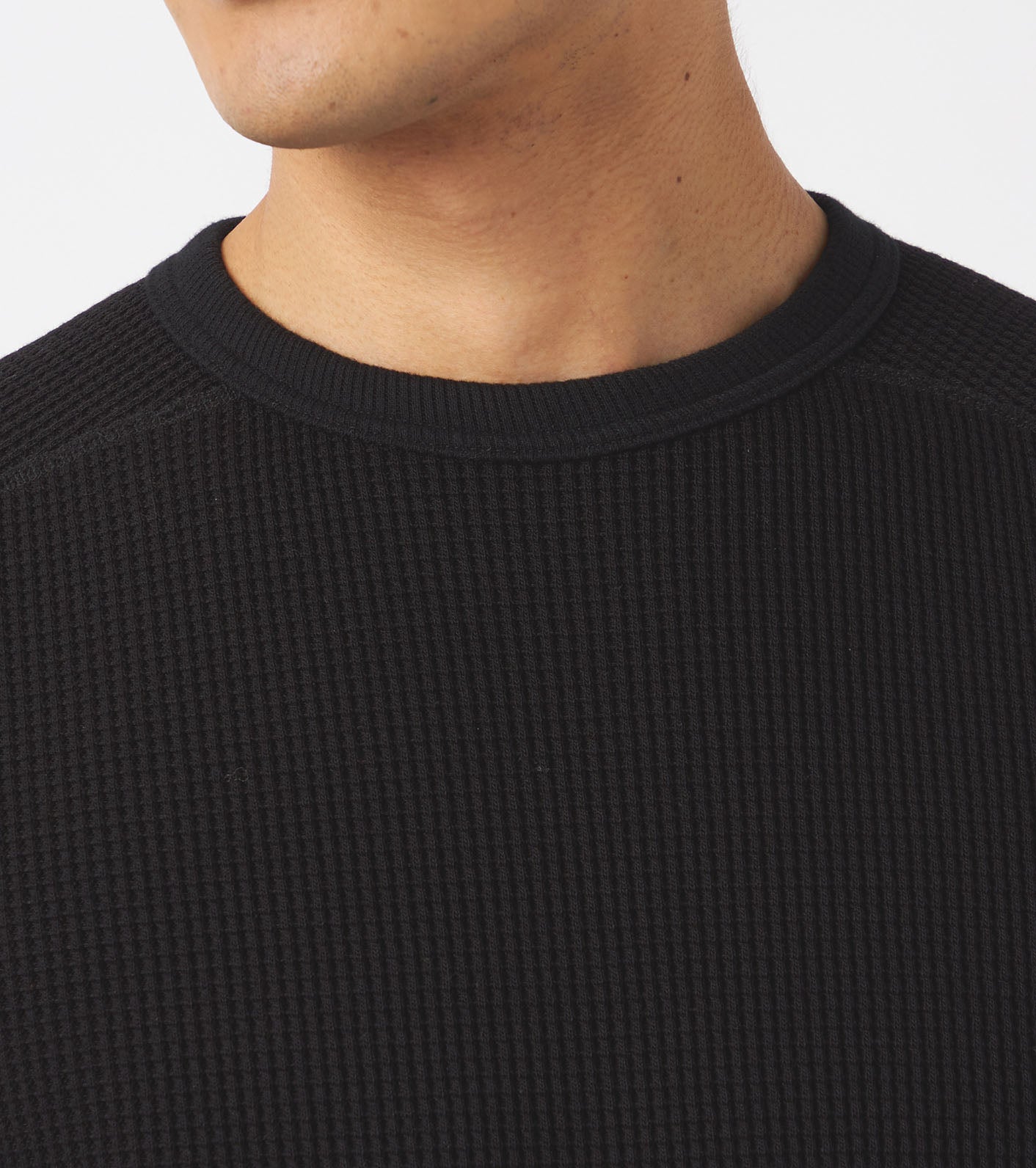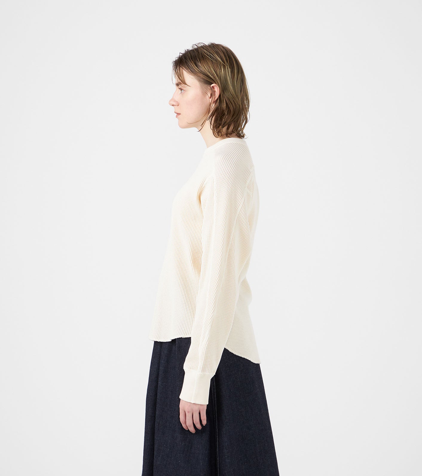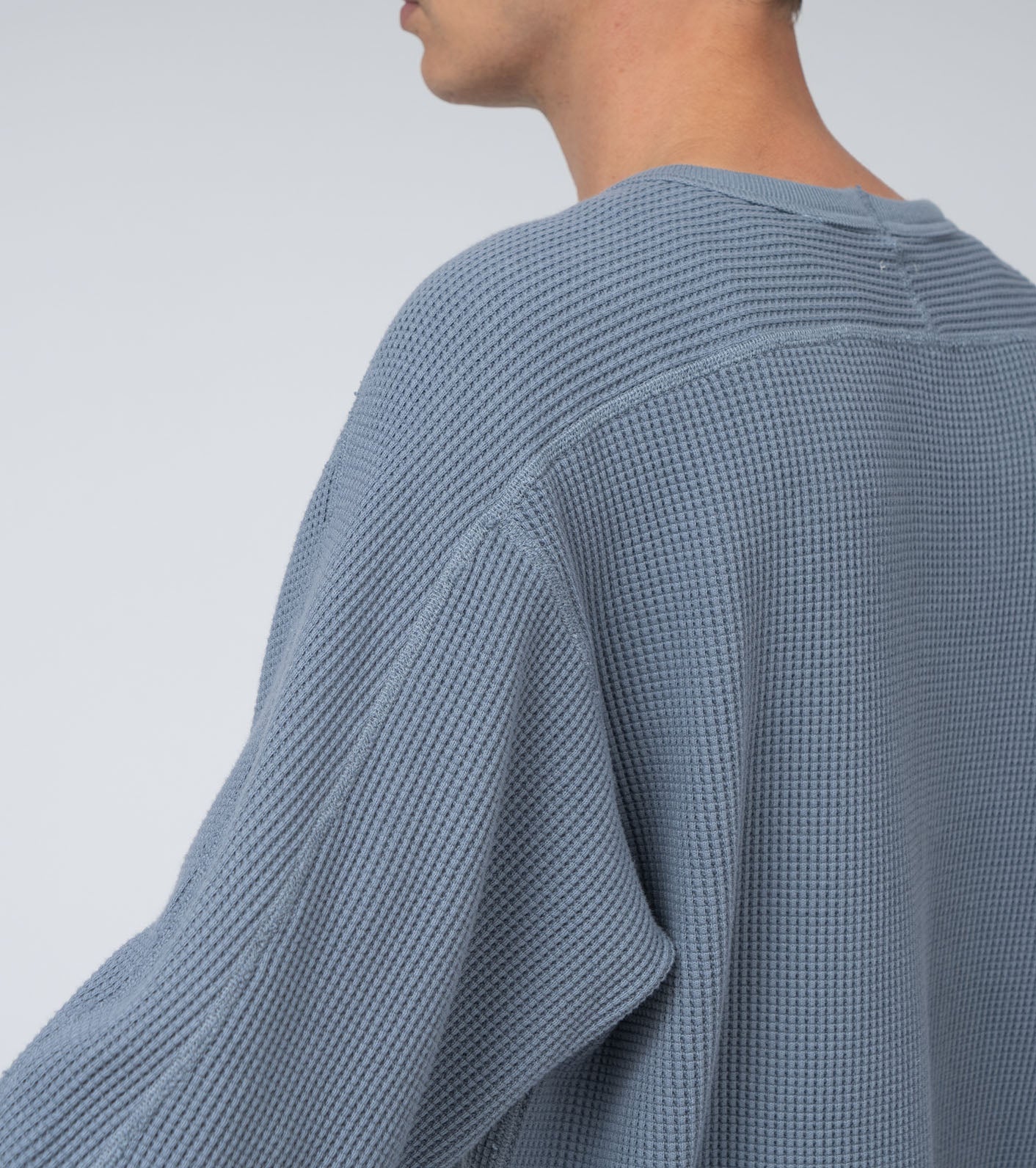 ・Made from thermal fabric knitted with a covering core yarn of organic cotton and recycled polyester.