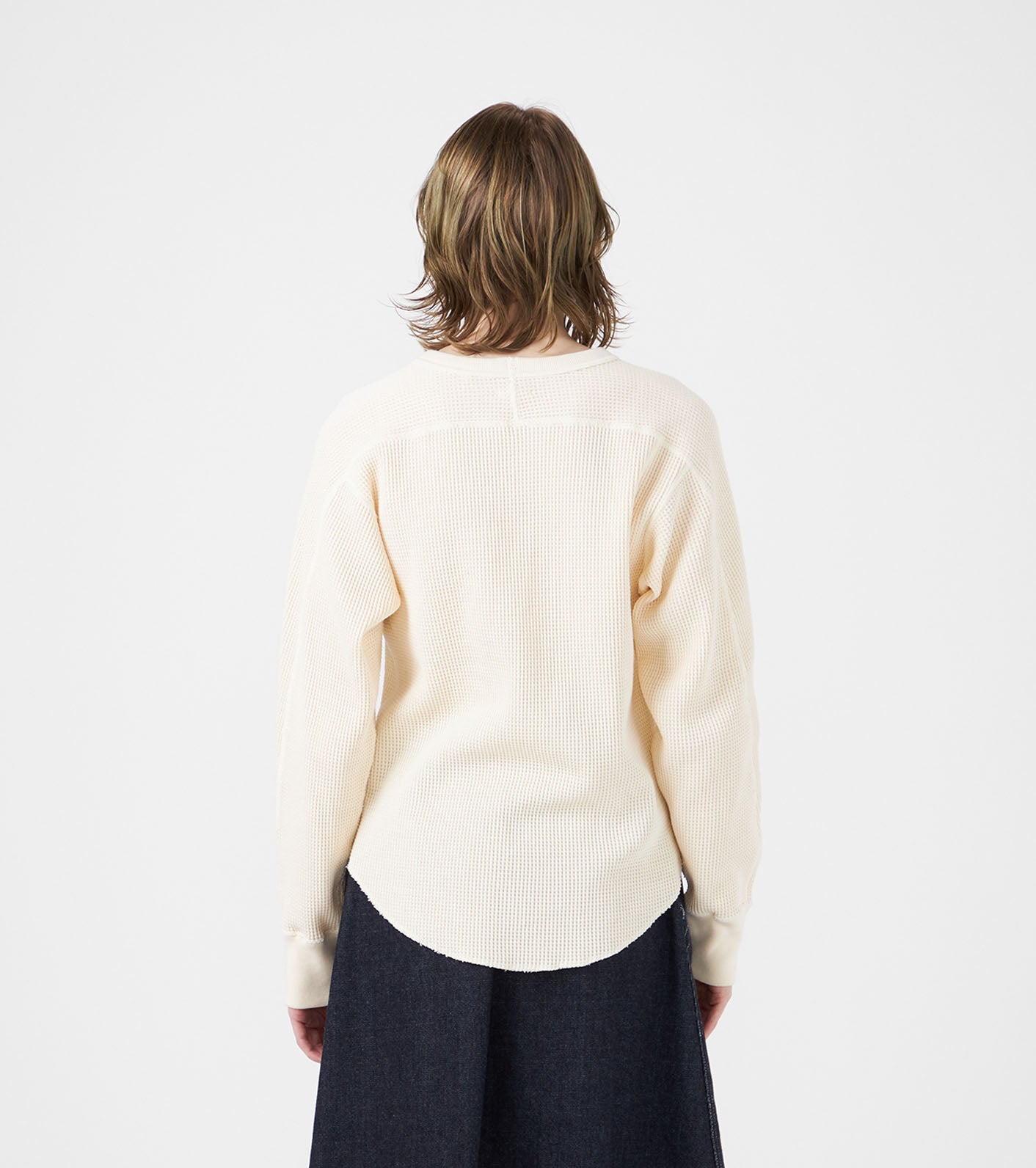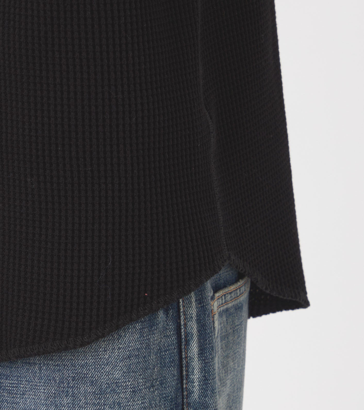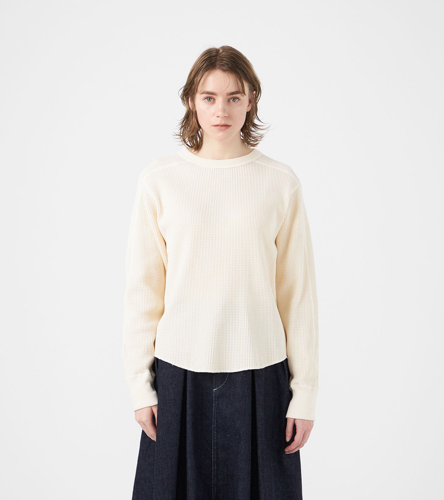 ・Made from thermal fabric knitted with a covering core yarn of organic cotton and recycled polyester.