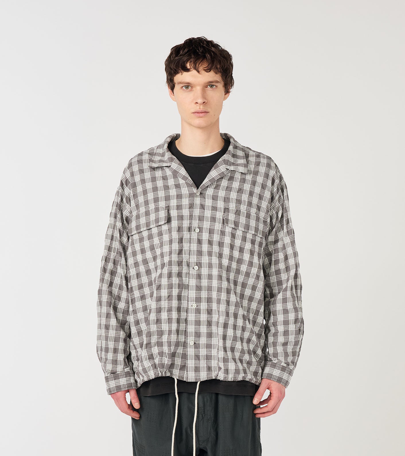 ・Features natural wrinkling created by differential shrinkage, and uses covering core yarn for the ground and slub yarn for the lines.