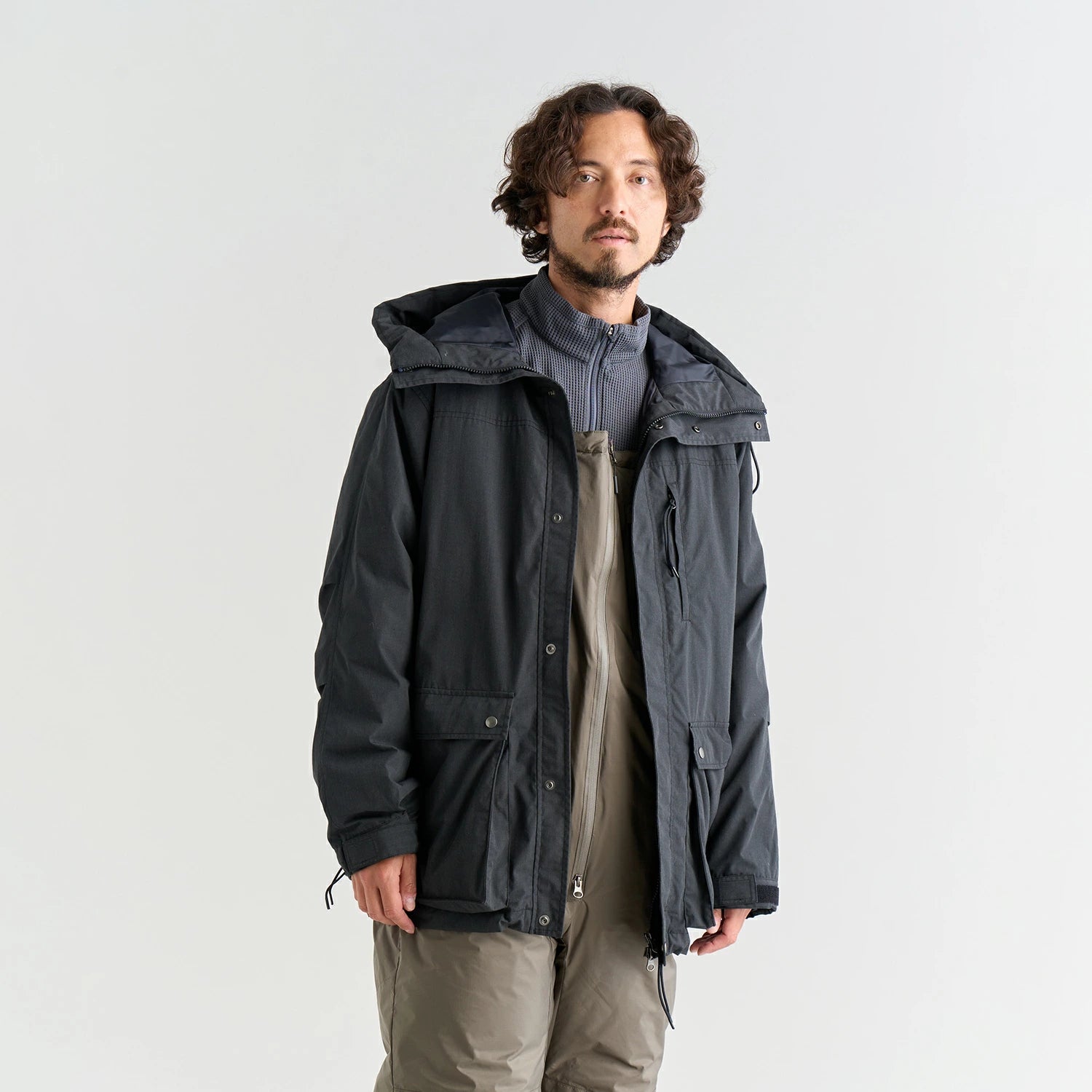 The HINOC DOWN 3 IN 1 JACKET is a 3-way down jacket made with NANGA's proprietary flame-retardant "Hinoc" material.