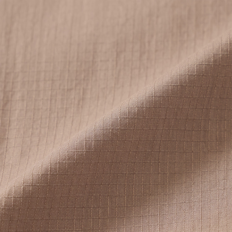 NANGA's new flame-retardant material, " HINOC RIPSTOP " . The "aramid" fiber blended into HINOC RIPSTOP material is not only flame-retardant, but also has excellent abrasion resistance and durability. In addition, ripstop fabric weaves the fibers in a grid pattern to prevent tears from spreading even if the fabric is torn or frayed. The combination of material and weave structure makes the fabric even more resistant to tearing. Furthermore, the fabric uses shrink-shrunk yarn to give it natural stretch and elasticity.
