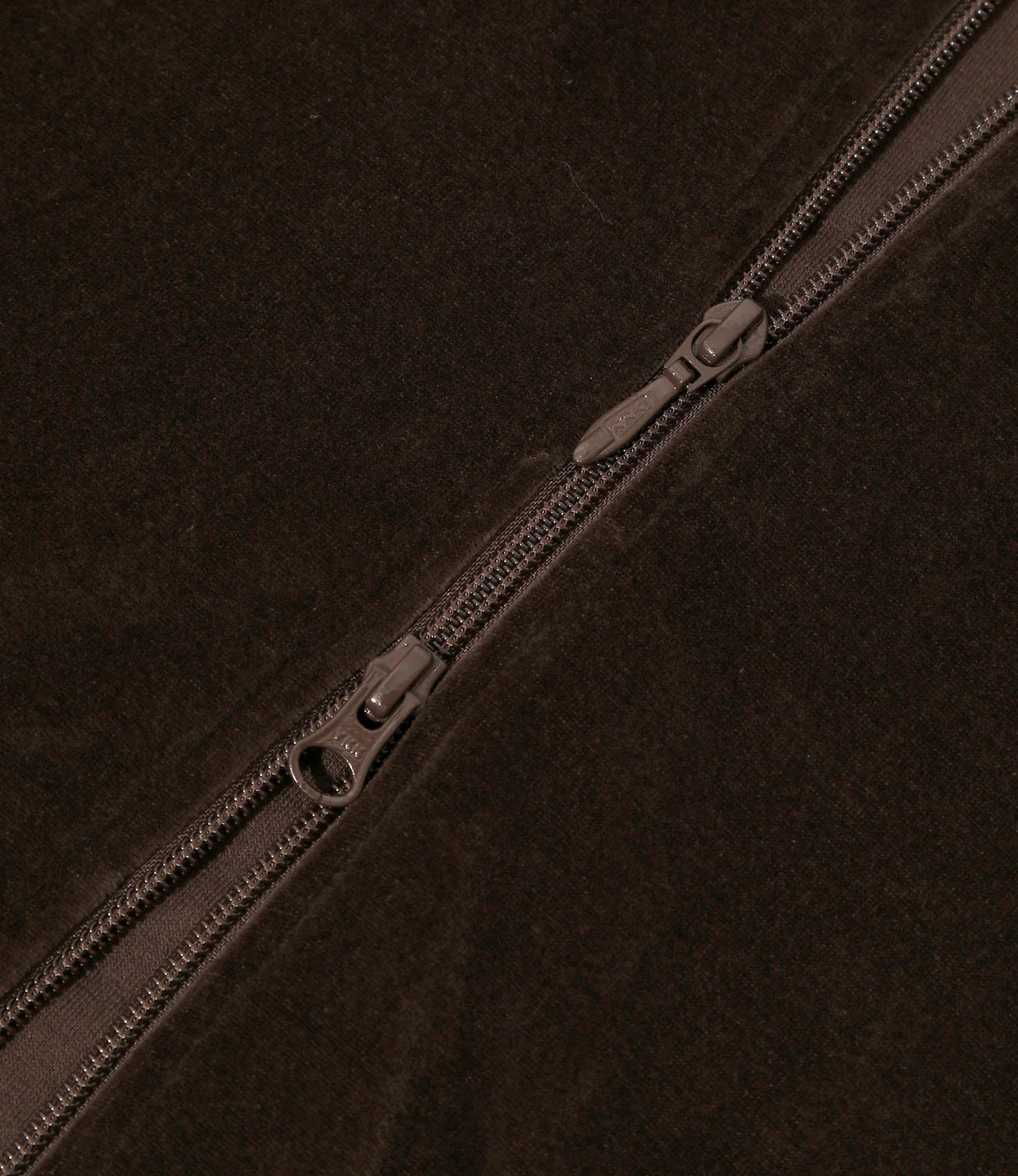 This tracksuit series uses velour, which is as popular as the standard polyester jersey material. This piece features a luxurious feel that is unique to velour, with its soft color and glossy texture. The neck is ribbed, emphasizing a clean and stylish image.
