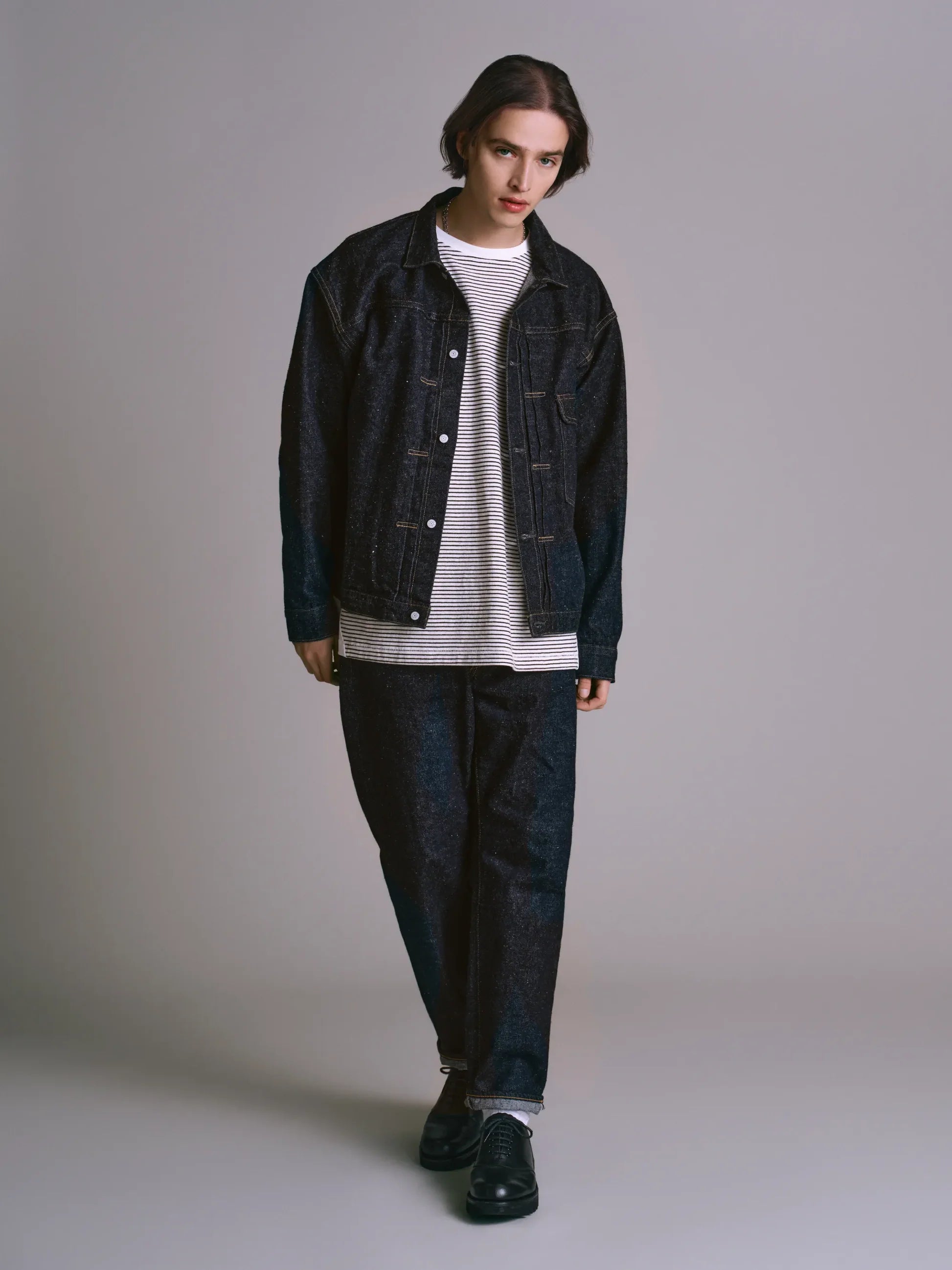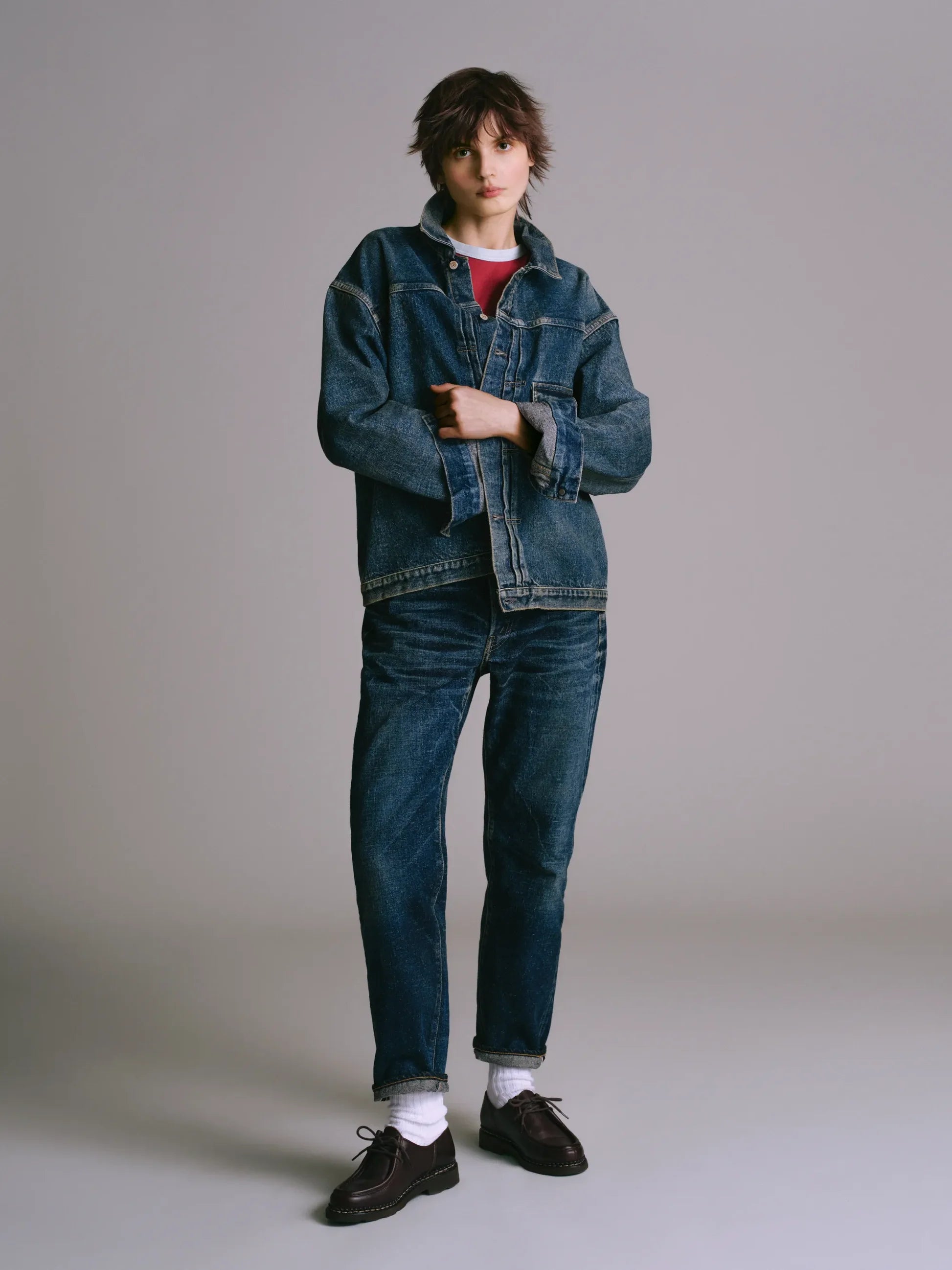 Based on the prototype for the slim‑straight fit that continues to this day, this piece recreates the rare button‑fly version of a model that originally featured a zipper. The distinctive seat tightness of the original has been modernized for comfort, and the length adjusted for a just‑right fit. Made using NM's original denim. This is New Manual #017.