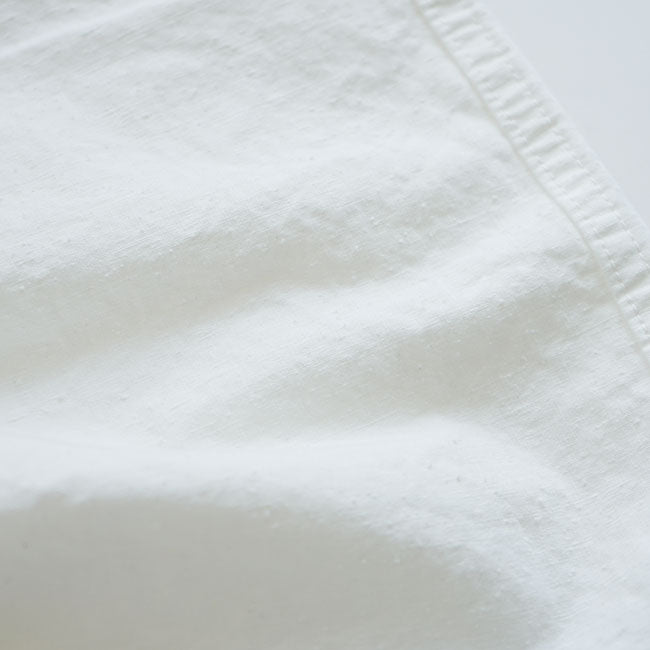 The pants were produced with a wide silhouette and characteristic front pockets, based on the motif of the pants used by the mountain troops of the French army. The silhouette is quite wide in the OASLOW range, and the pants are quite voluminous when worn. The motif of these trousers is that they are overpants, so they are produced with a drawcord at the waist and a wide silhouette as it is.