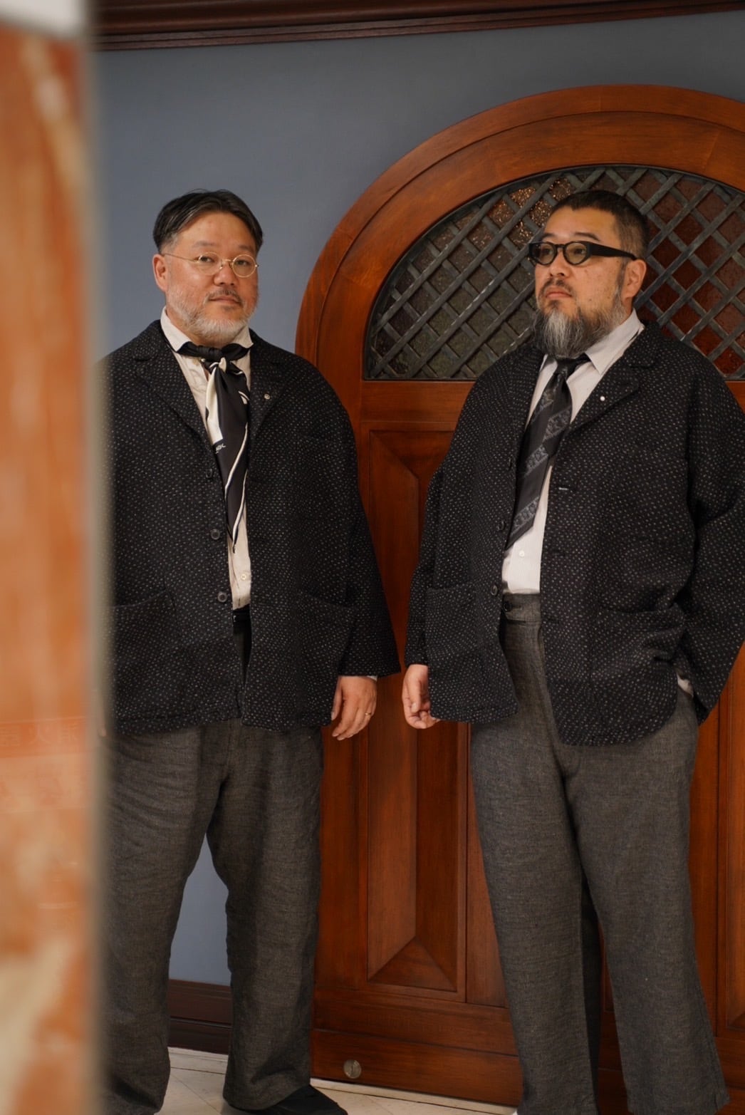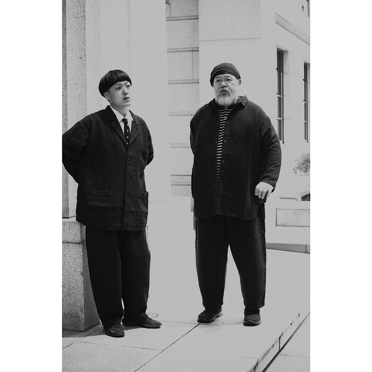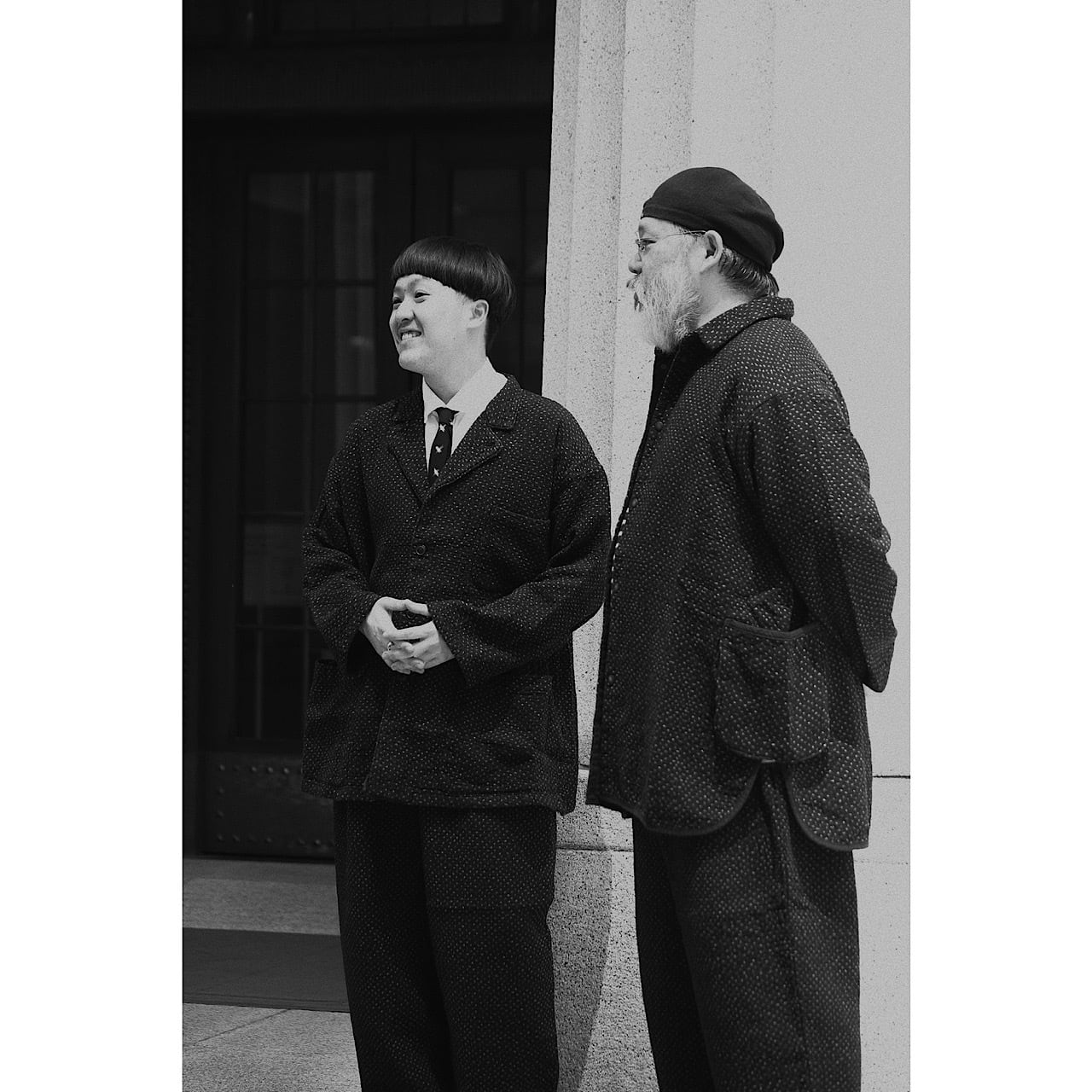 Like the blue NEW SASHIKO, it is lighter and more comfortable to wear than it looks. This series is more comfortable to wear than it looks in the picture. It is made of the same original fabric as the blue, but the black has a more subtle stitching and the pattern is more prominent. As the name suggests, the wide jacket is loose in both width and shoulders, and the length is short considering the size. Personally, I would like to wear this as a set with the NEW SASHIKO black Bebop. The collar is also low, so you can enjoy wearing it with a scarf or something. This wide jacket is not too formal, but it is also great to wear it casually.