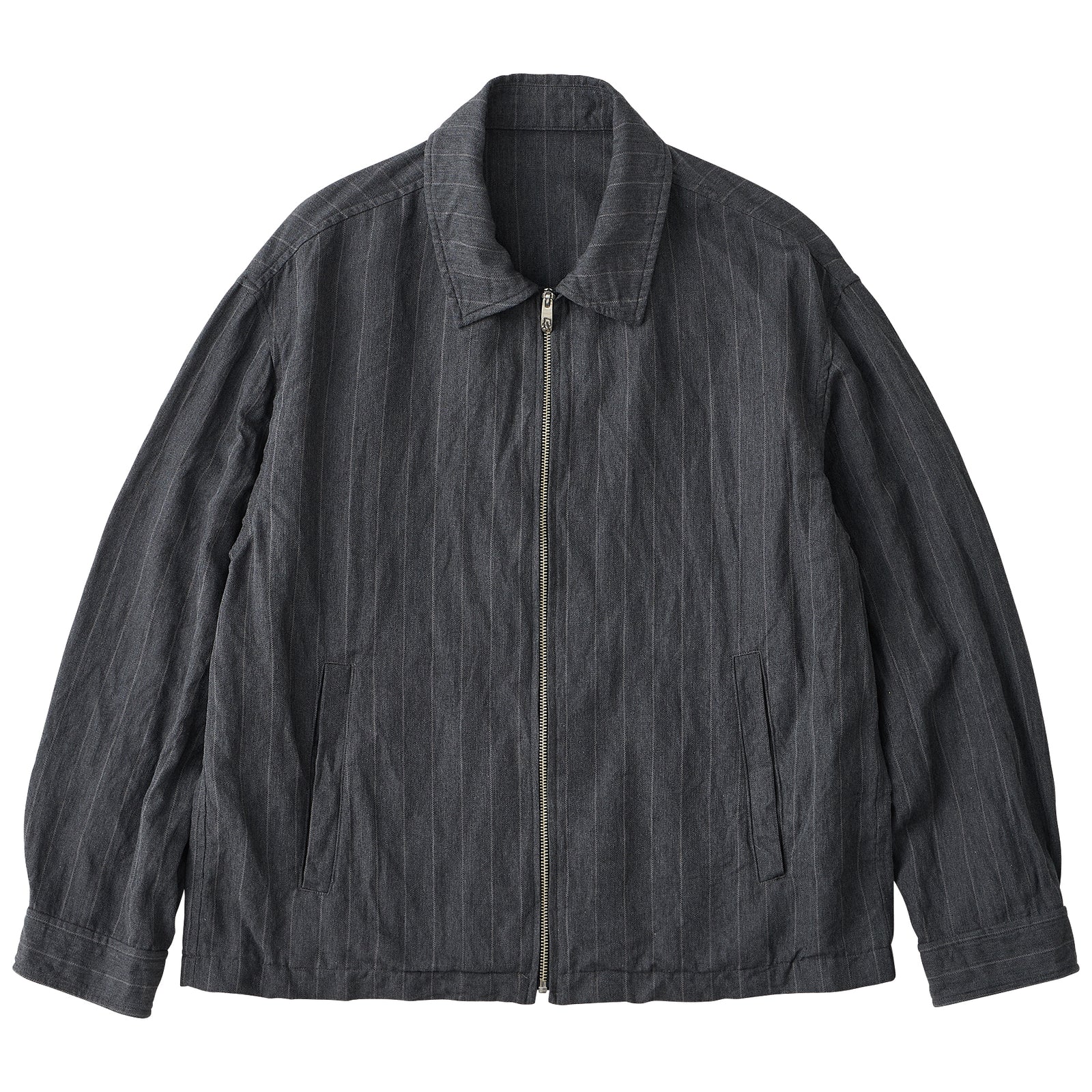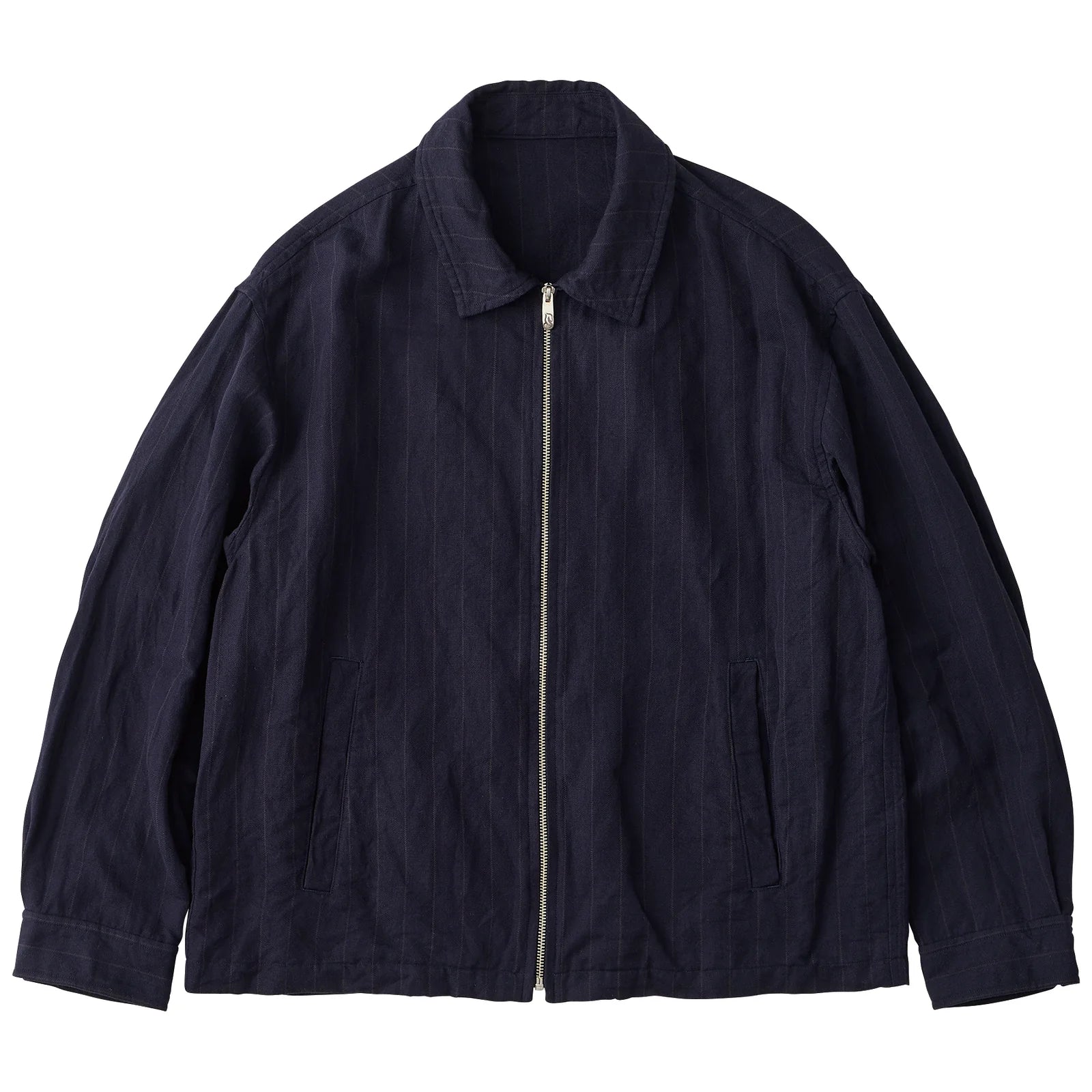 Porter Classic PIN STRIPE LINEN COTTON ZIP UP JACKET W / LOVE & PEACE SILVER