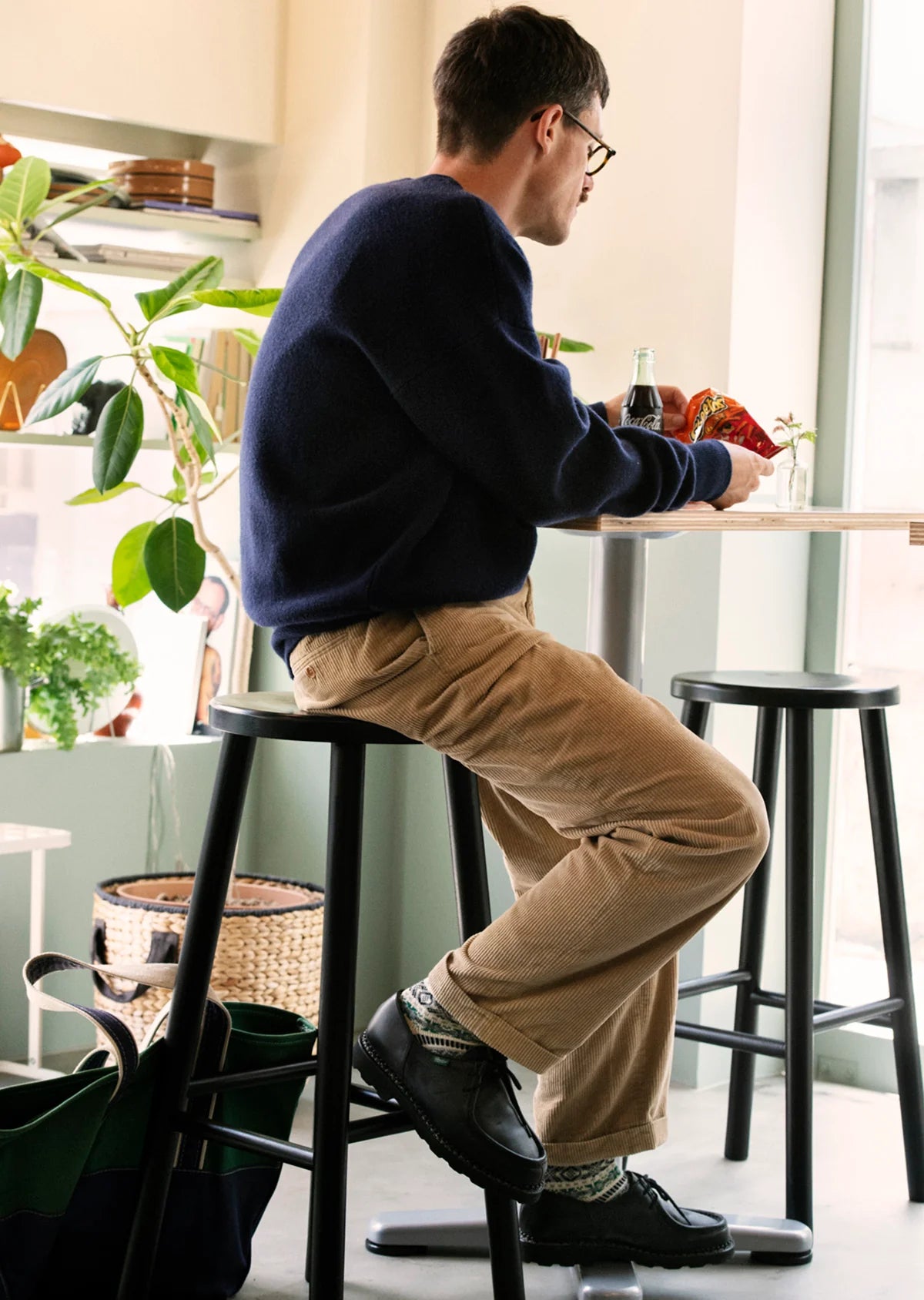The design of these jacquard socks is inspired from traditional fairisle sweaters crafted in Fair Isle, Scotland. The geometric pattern is carefully and finely knitted for a warm, hand-knitted-like appearance. Each color combination is selected by referring traditional designs, but we try to make it light to brighten up the foot. Although fairisle sweaters are originally made of wool, this pair is knitted with organic cotton for year-round use. Organic cotton yarn used for this item is produced by a unique fuzz-resistant spinning method and is called ‘compact yarn.’