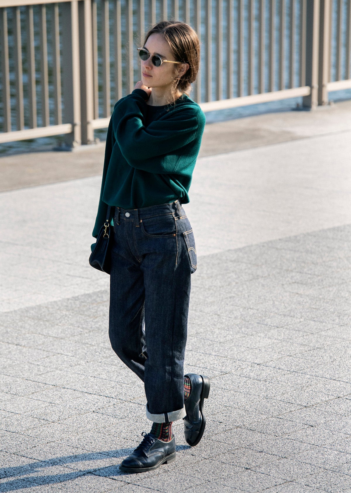 With inspiration from vintage jacquard knitwear, these jacquard socks are designed by reconstructing the pattern. The adequately thick fabric goes well with both sneakers and leather shoes, naturally blending in with simple outfits. The toe is finished with linking for a smooth feel. Because the number of jacquard knitting machines and skilled operators are now both decreased, such retro jacquard socks become even rarer in the market.