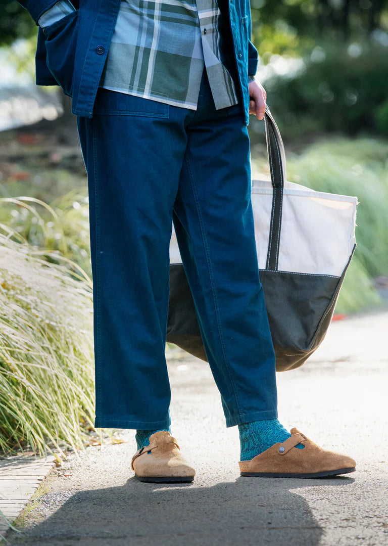 These chunky socks are knitted with a rare traditional machine with thick recycled cotton yarn that is often used for hand-knitting. ROTOTO always opts for recycled cotton yarn developed by a yarn company based also in Nara Prefecture. Their environment-minded product is made out of cotton waste from spinneries in Japan by re-spinning it with unique techniques. Although the material is more likely to get frayed, the mixed heather color made with two-strand yarn makes dirt and fuzz less visible.