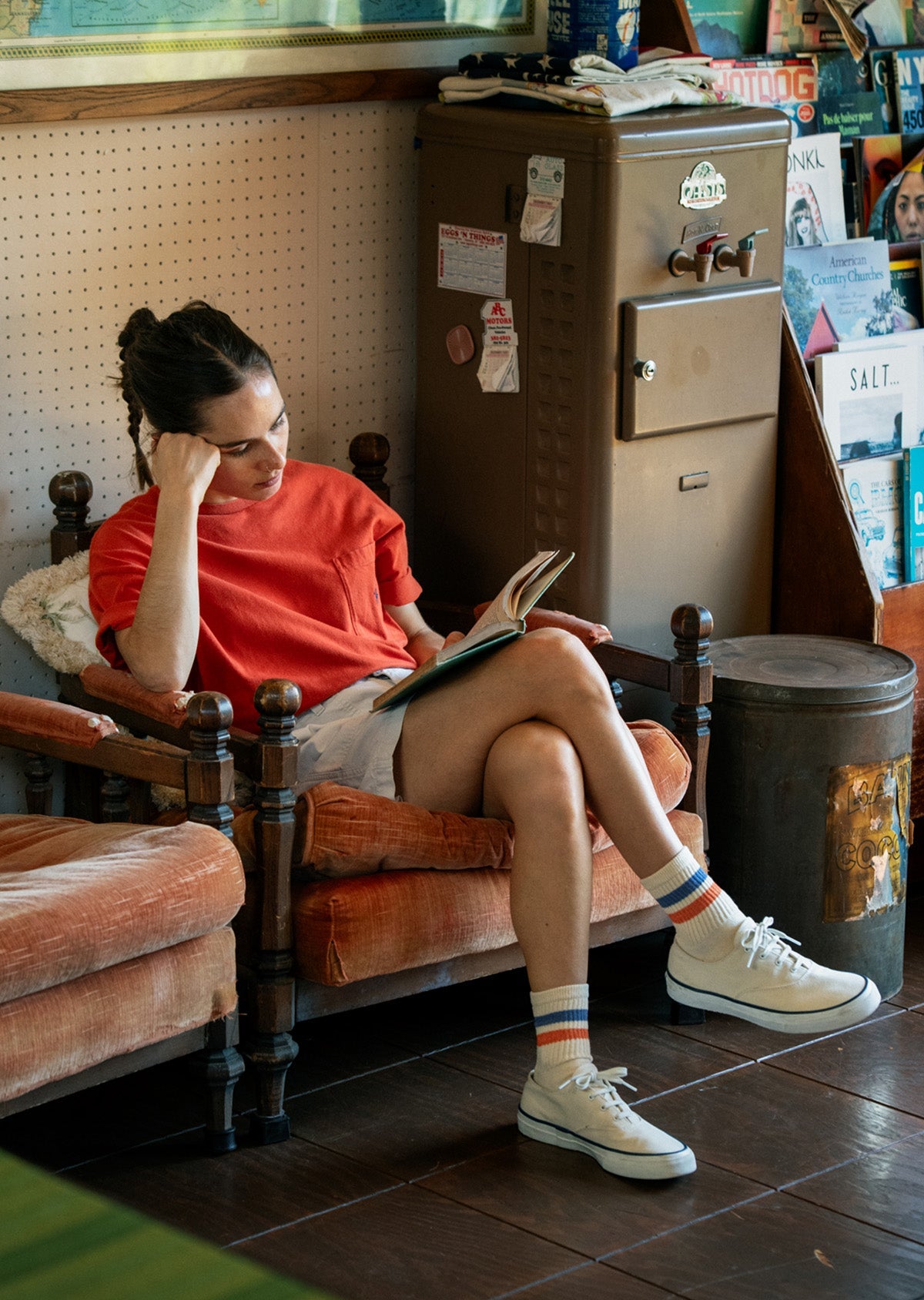 These retro athletic socks are knitted mainly with organic cotton. The chunky fit and soft colorways make the item perfect to match with casual outfits, while the brushed sole provides extra cushioning and excellent moisture-absorbance.