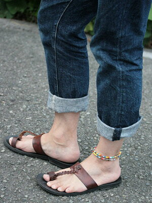 This anklet is made using auspicious beads called "Christmas beads" because in West Africa they are used as wedding and Christmas decorations.