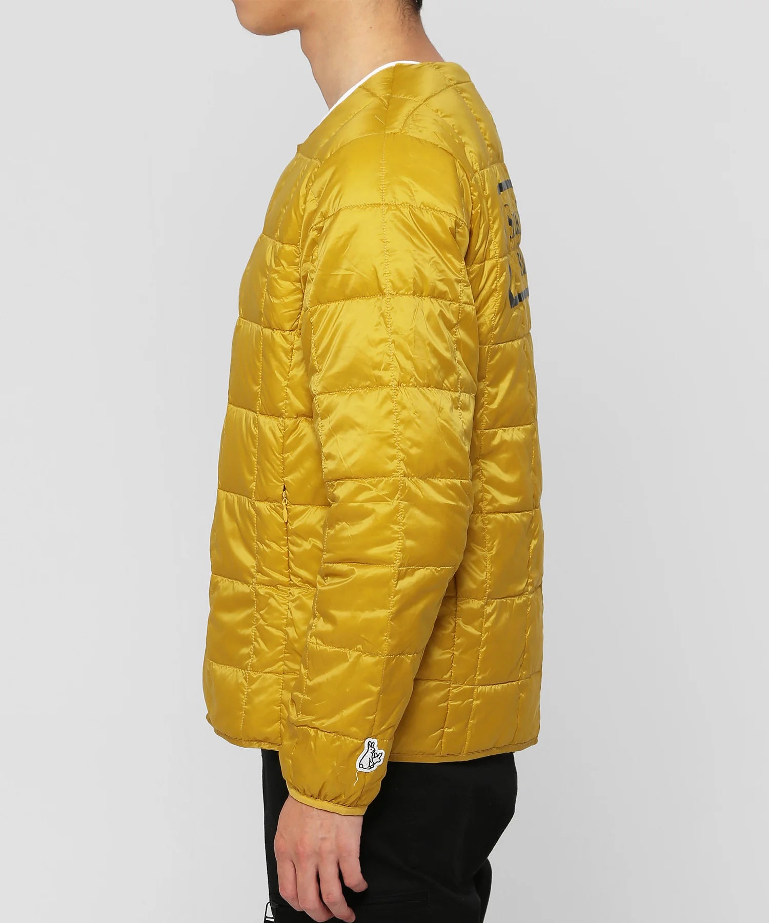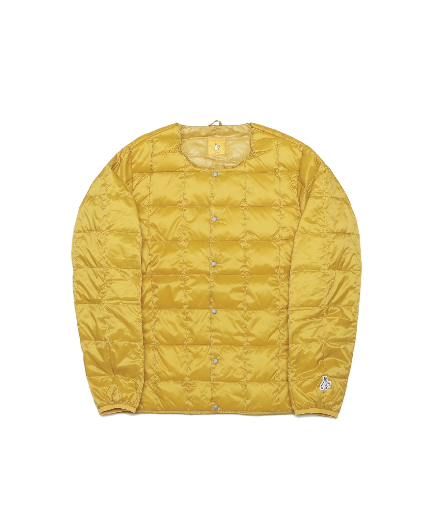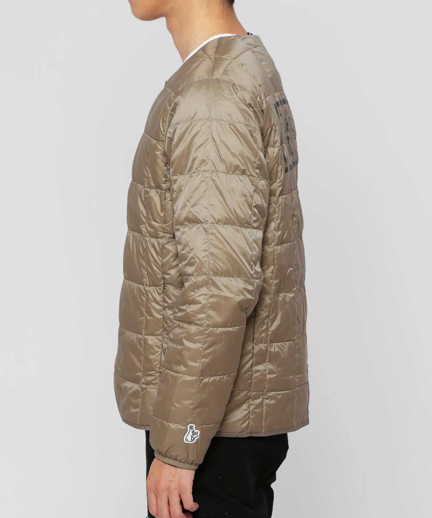 A collaboration item with the inner downwear brand "TAION" is now available. A simple design with the Smoking kills box logo on the back to make it easier to coordinate when worn as an inner down. It is a lightweight yet warm item by using 90% of down.