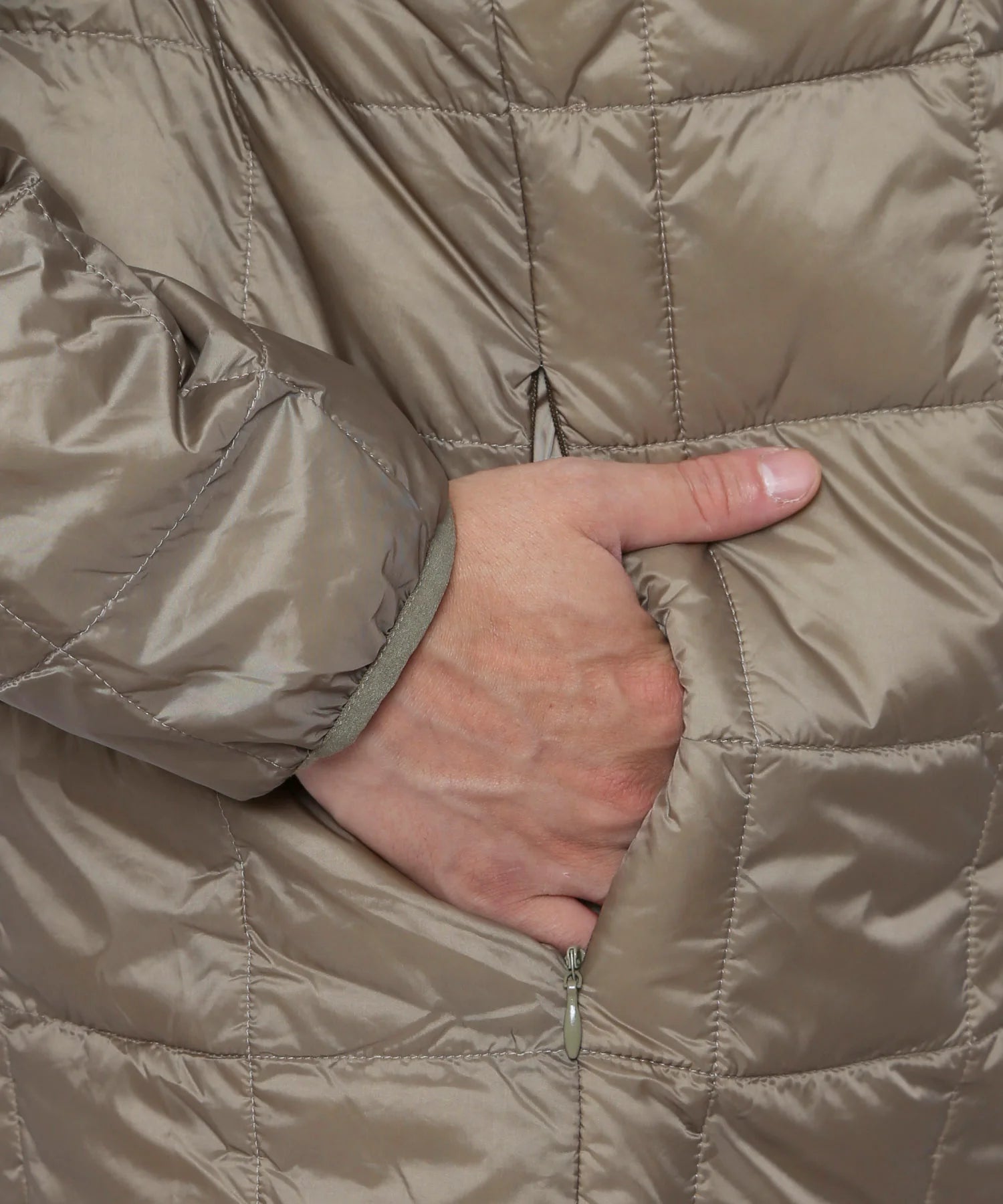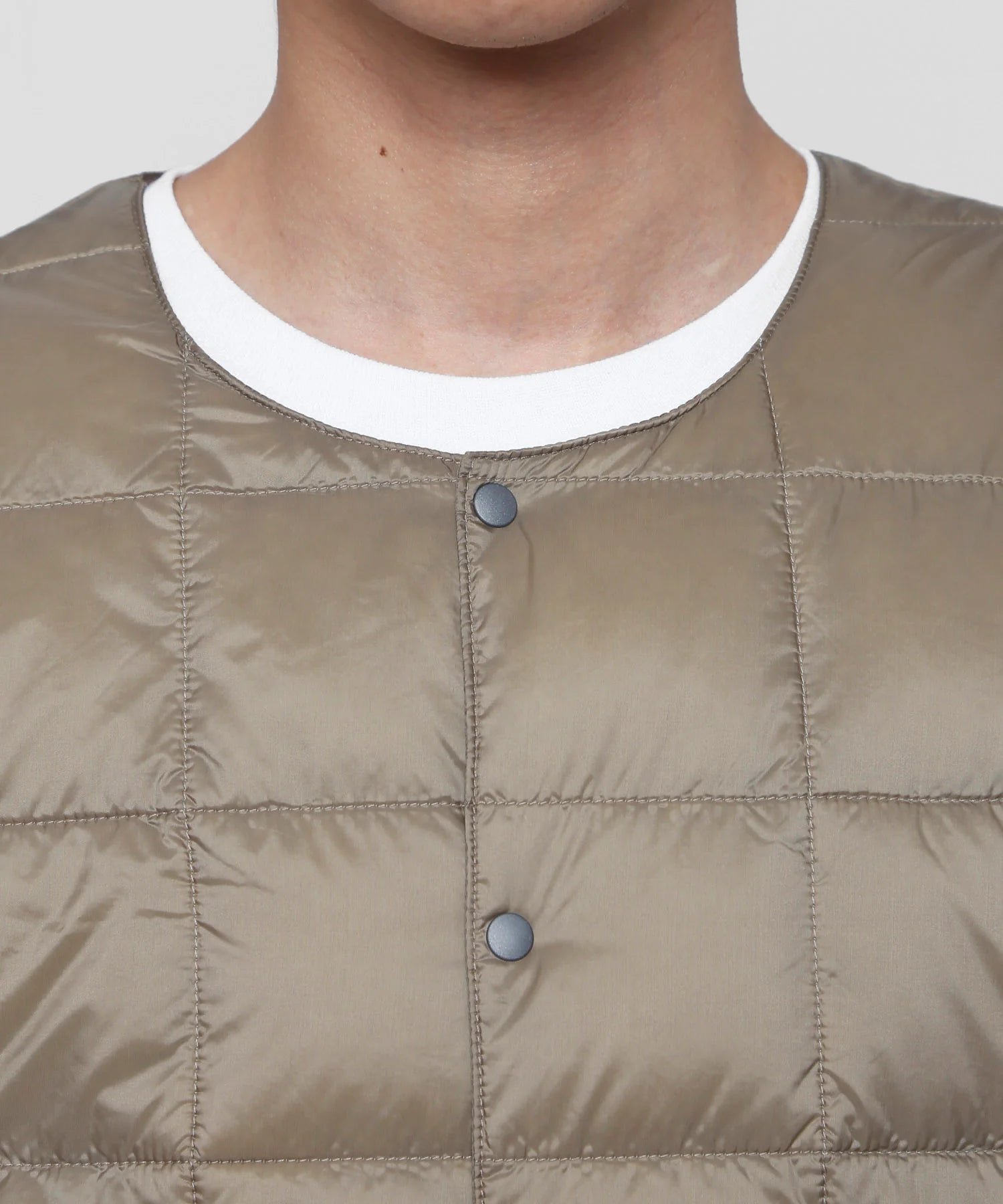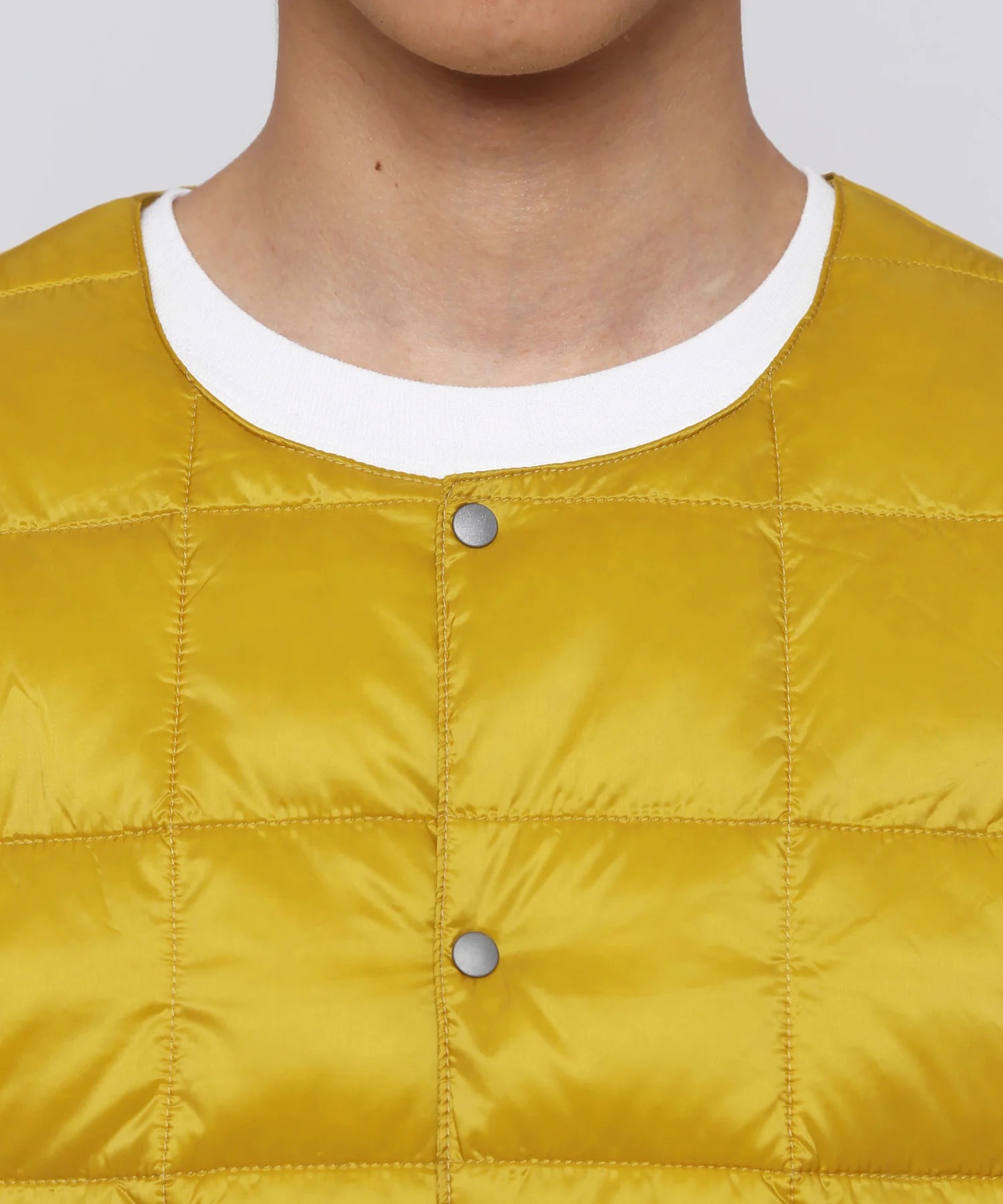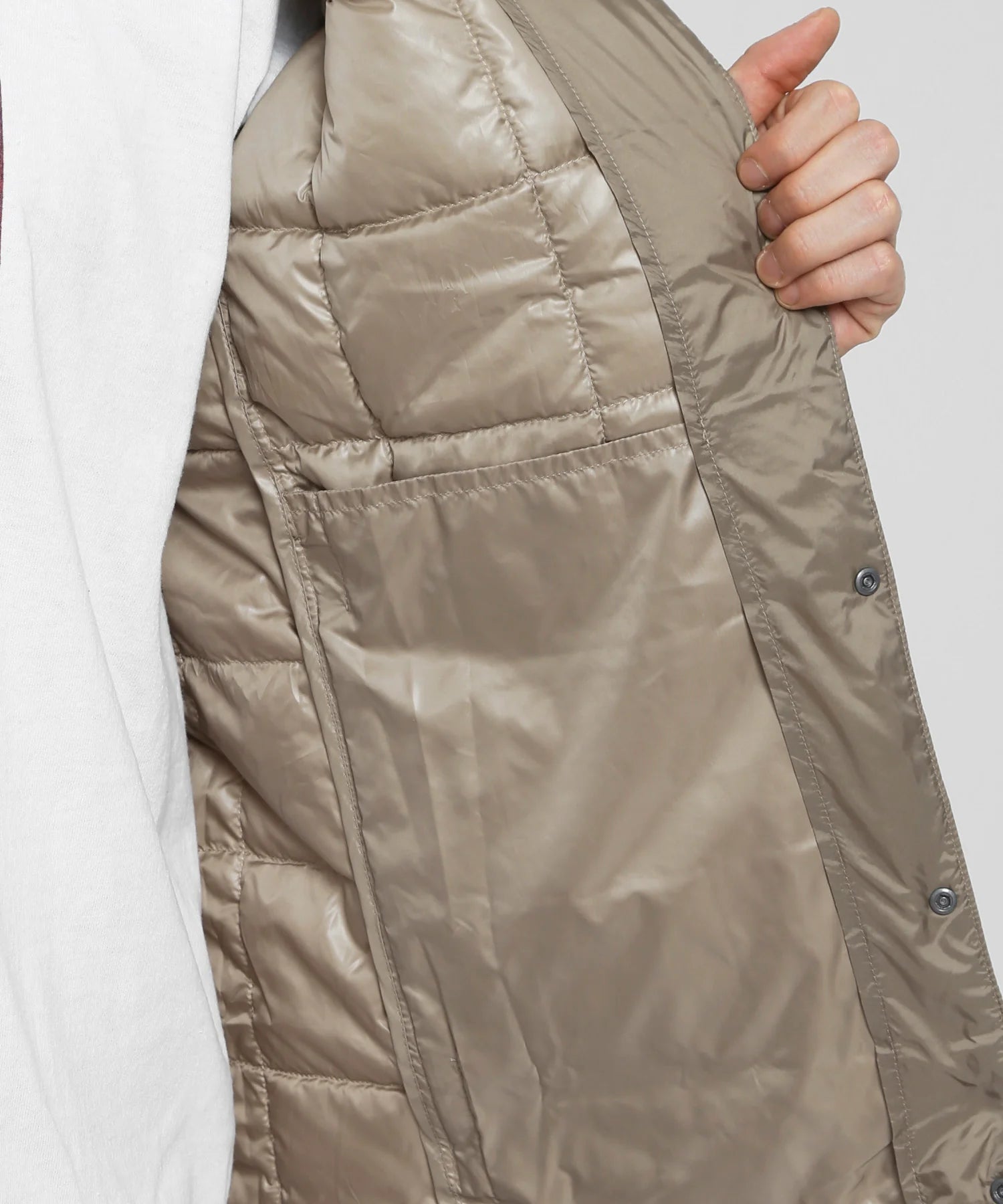 A collaboration item with the inner downwear brand "TAION" is now available. A simple design with the Smoking kills box logo on the back to make it easier to coordinate when worn as an inner down. It is a lightweight yet warm item by using 90% of down.