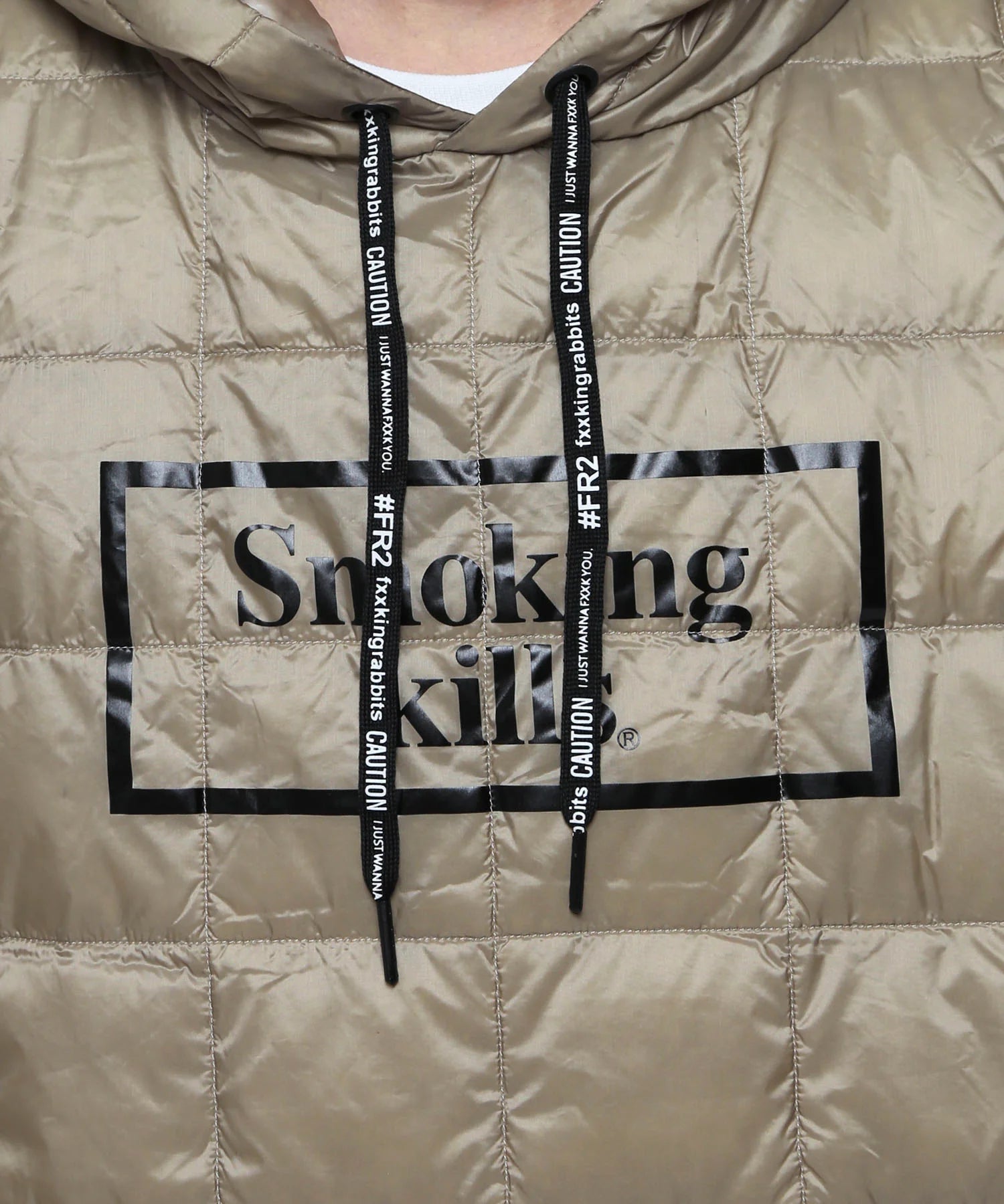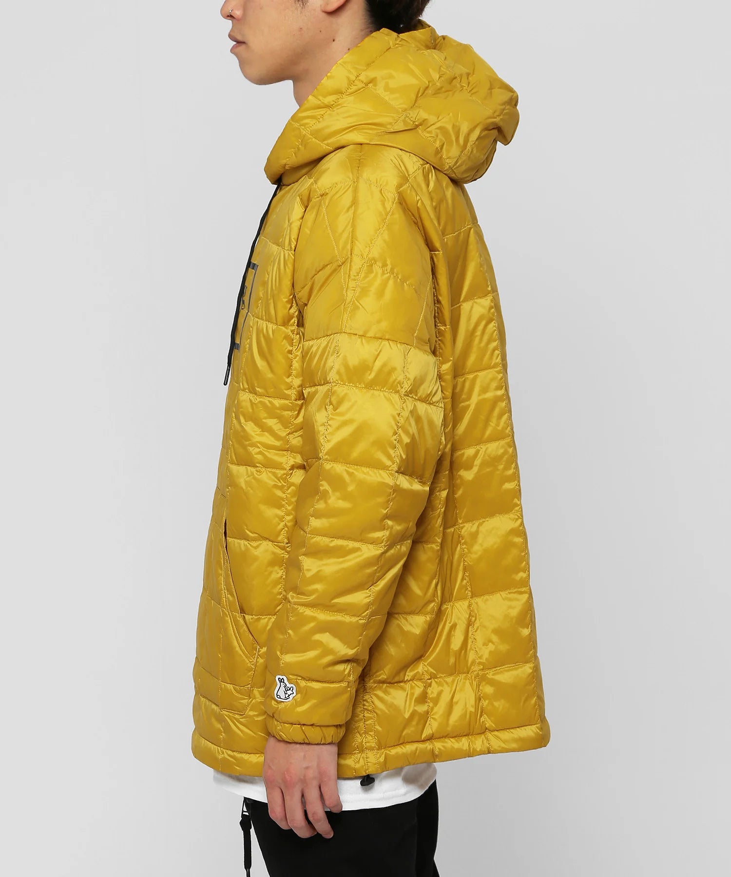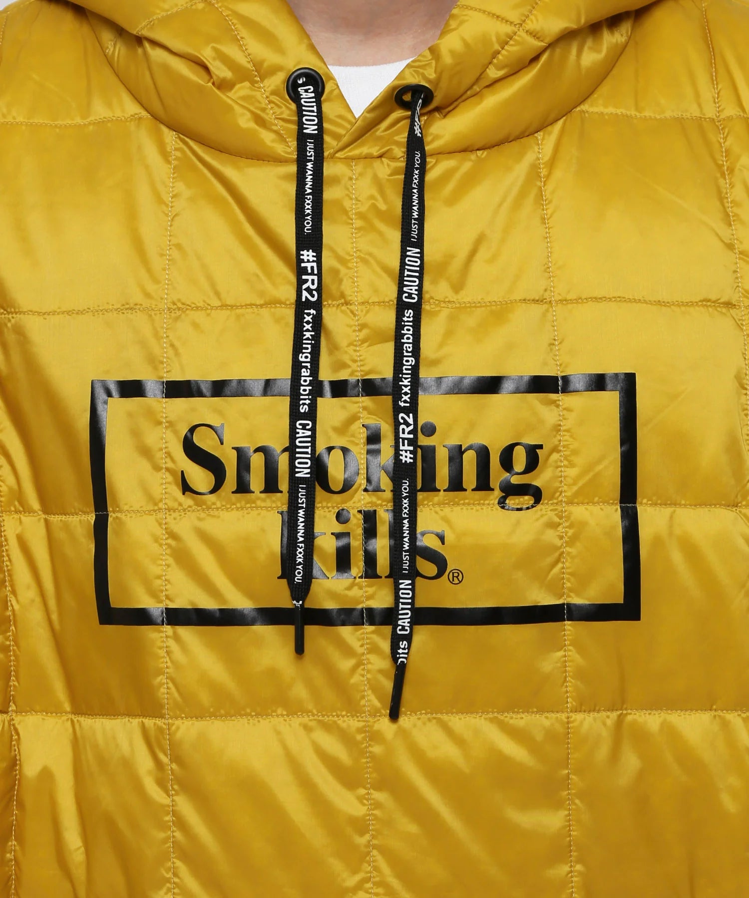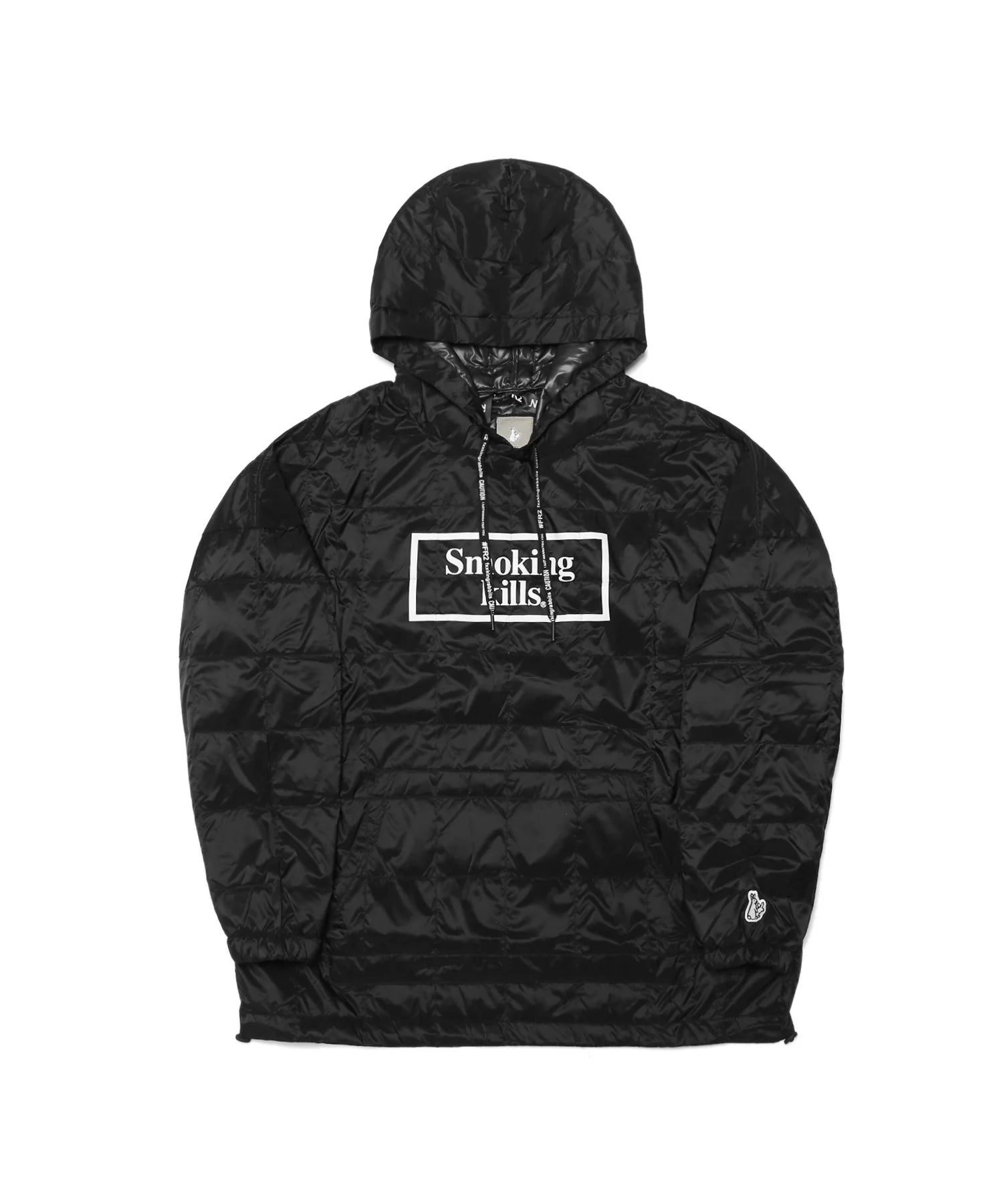 A collaboration item with the inner downwear brand "TAION" is available now. A simple design with the Smoking kills box logo. It is also a point that you can wear it inside with a loose size setting. The hood string is printed side by side with the brand logo and the standard logo caution. Nylon material makes it difficult for the wind to pass through, and 90% of the down is used, so it is a lightweight yet warm piece of clothing.