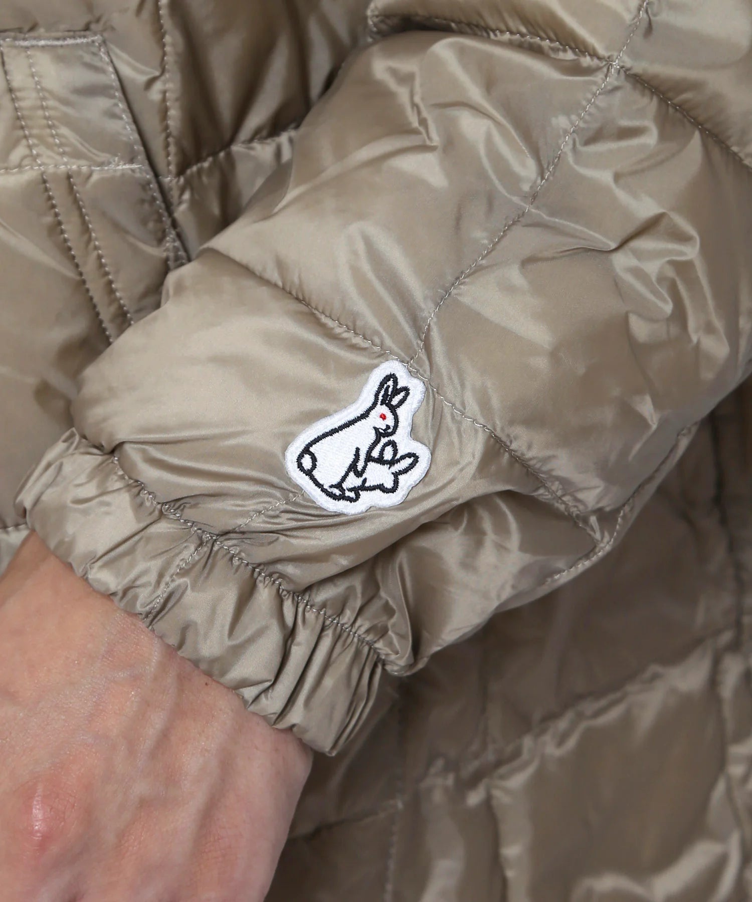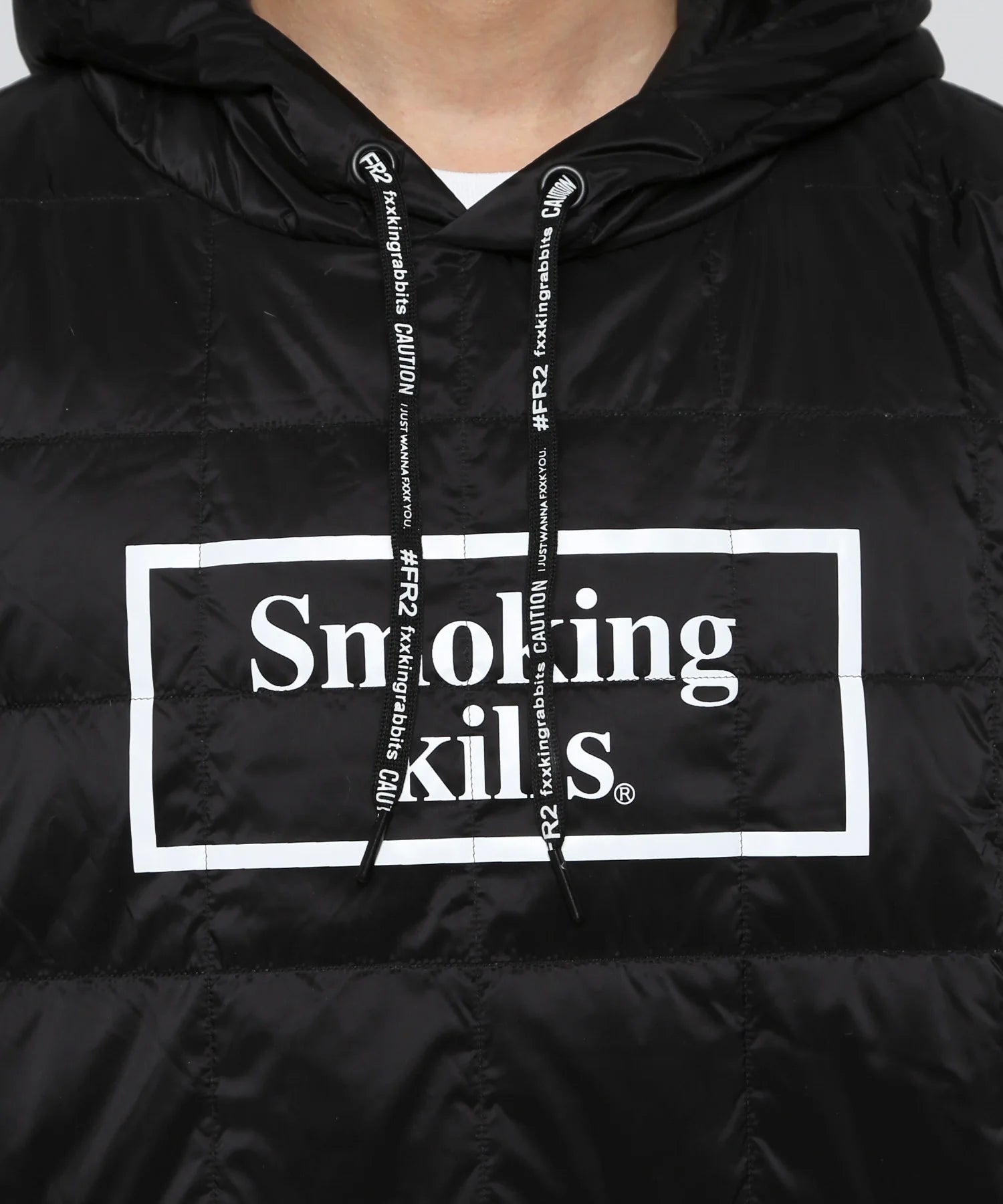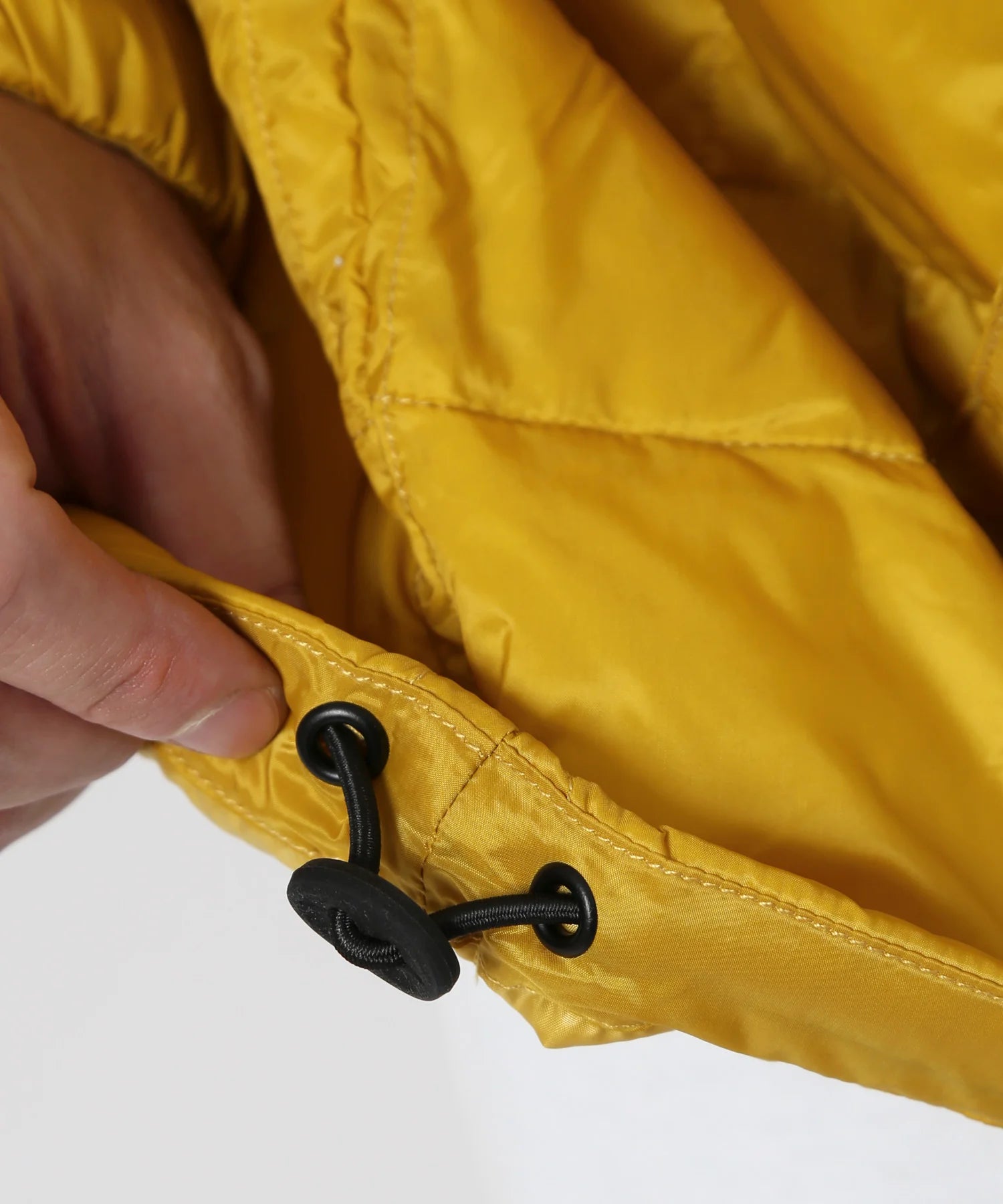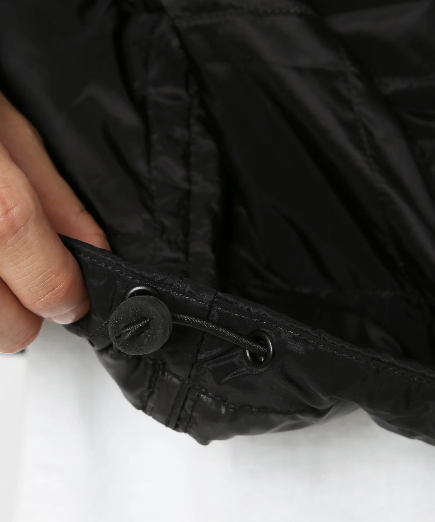 A collaboration item with the inner downwear brand "TAION" is available now. A simple design with the Smoking kills box logo. It is also a point that you can wear it inside with a loose size setting. The hood string is printed side by side with the brand logo and the standard logo caution. Nylon material makes it difficult for the wind to pass through, and 90% of the down is used, so it is a lightweight yet warm piece of clothing.