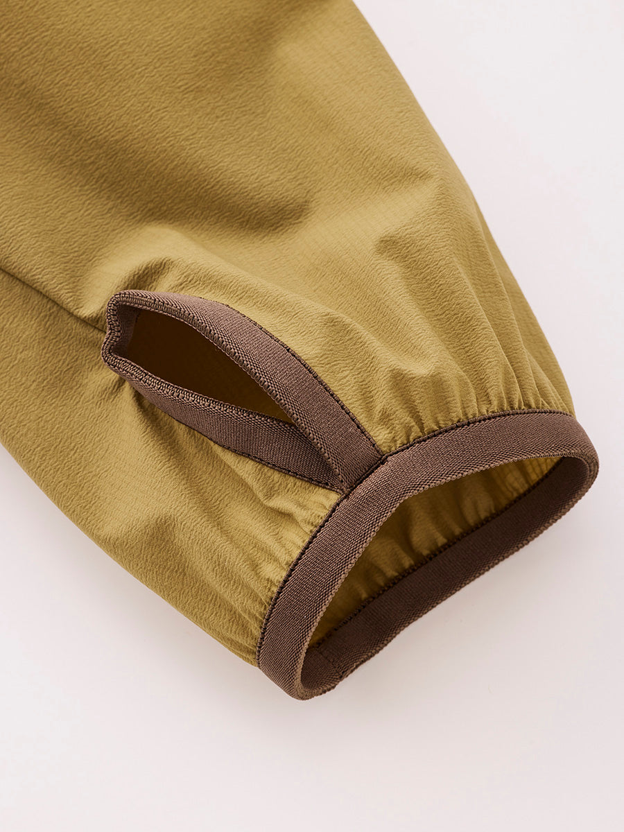 Teton Bros.'s long-selling, thin, lightweight wind shell that can be used all year round has been redesigned with new materials to make it even easier to use. The windproof properties that stop the wind moderately and the water repellency that repels drizzle remain the same as before, but the fine unevenness on the back side has been made clearer, improving the skin's ability to separate from sweat and increasing durability at the same time. The thin nylon fabric with mechanical stretch is comfortable to wear over a shirt or fleece and provides moderate warmth in chilly conditions. This is a piece that can be used in all aspects of outdoor activities such as mountain climbing and trekking. The weight is only 100g for the M size. It is packable and can be stored in the zippered pocket on the right hip, so you can carry it with you at any time without hesitation.