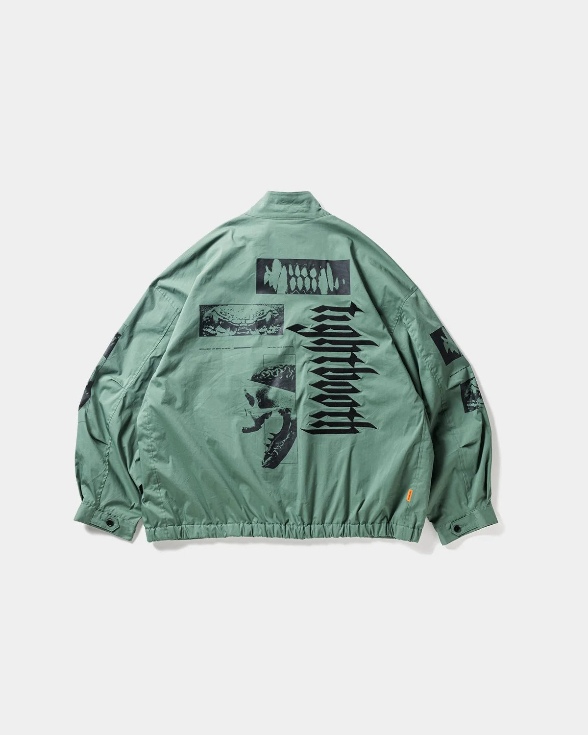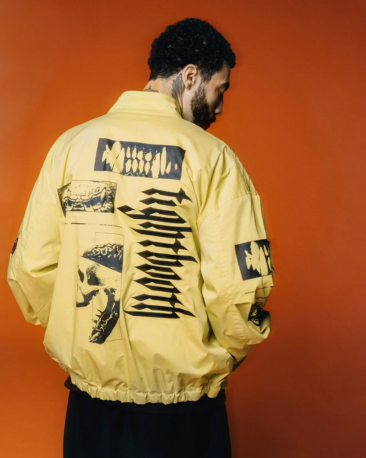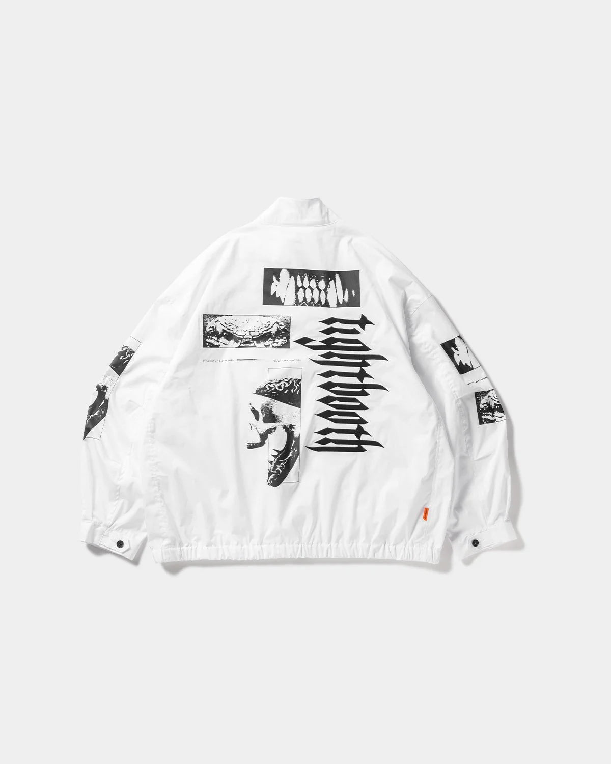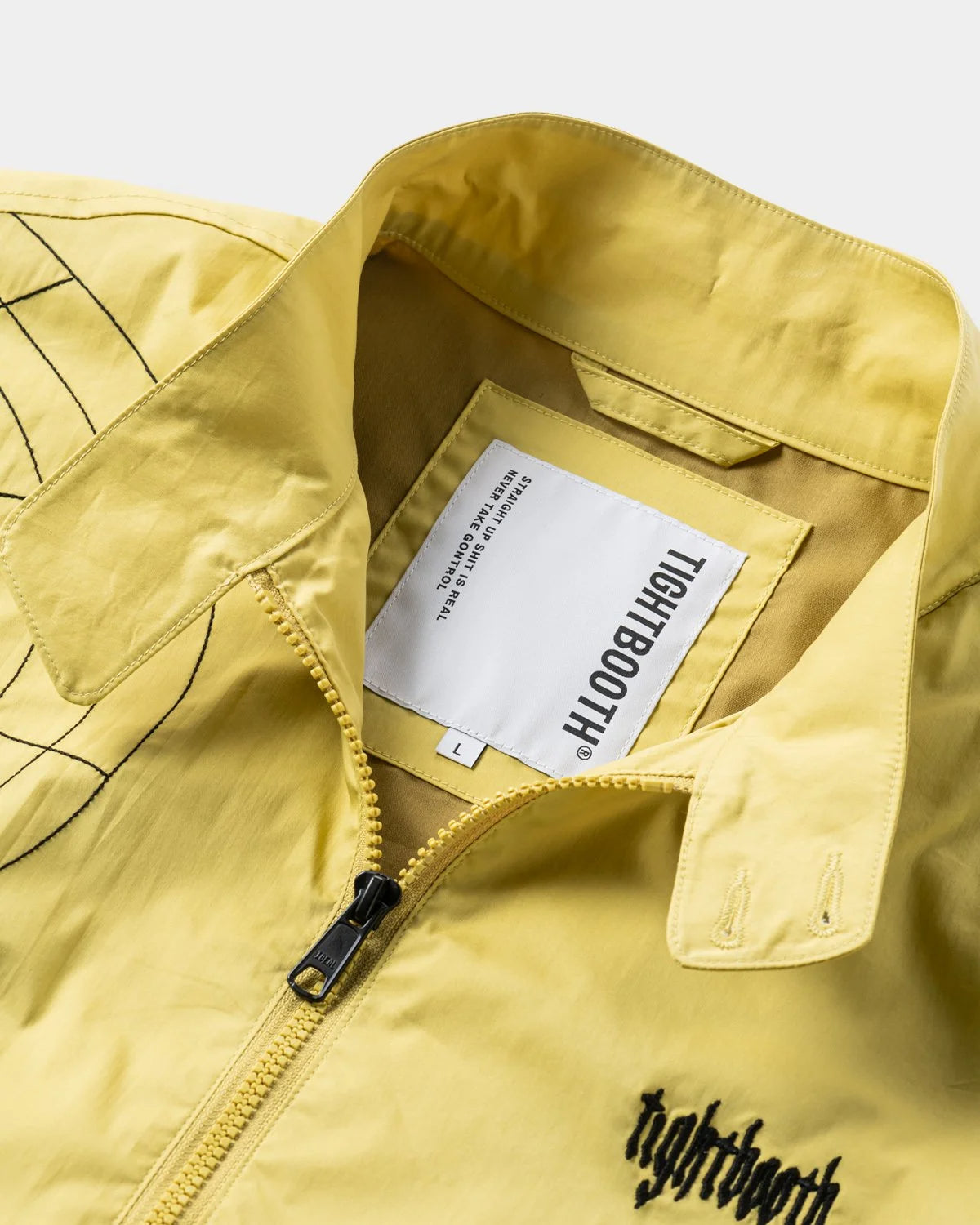 The front has a double zip design, with a logo embroidered on the left chest and a spider stitch design on the right shoulder.