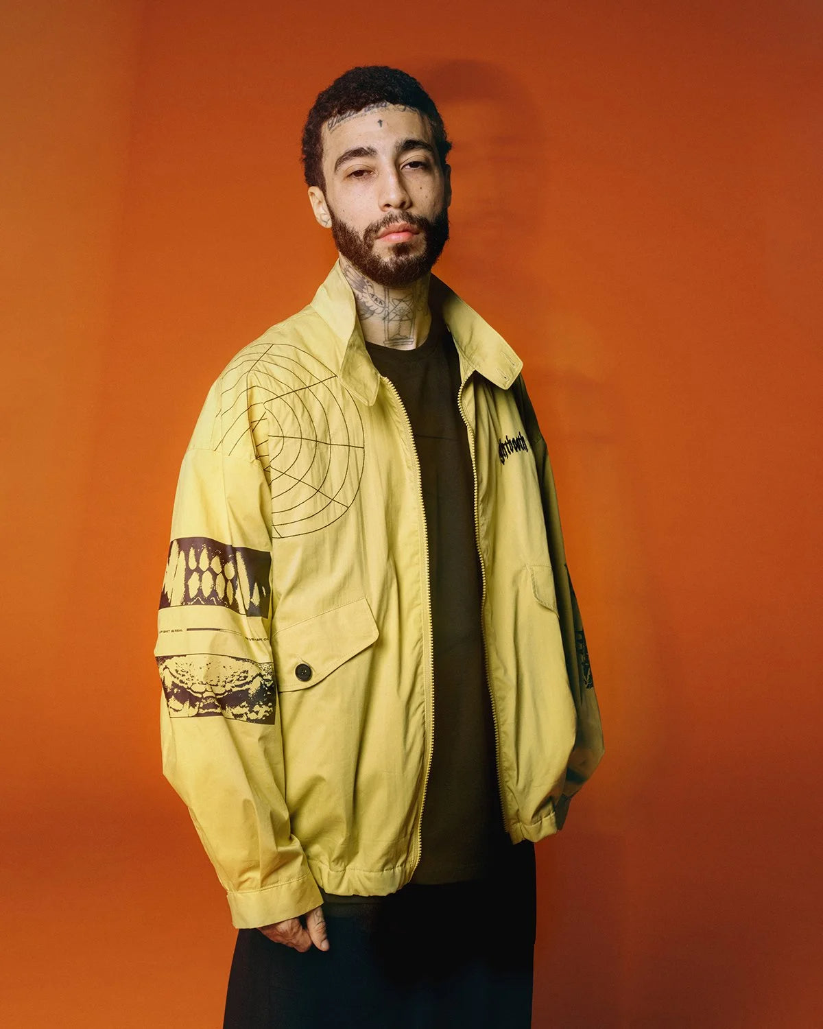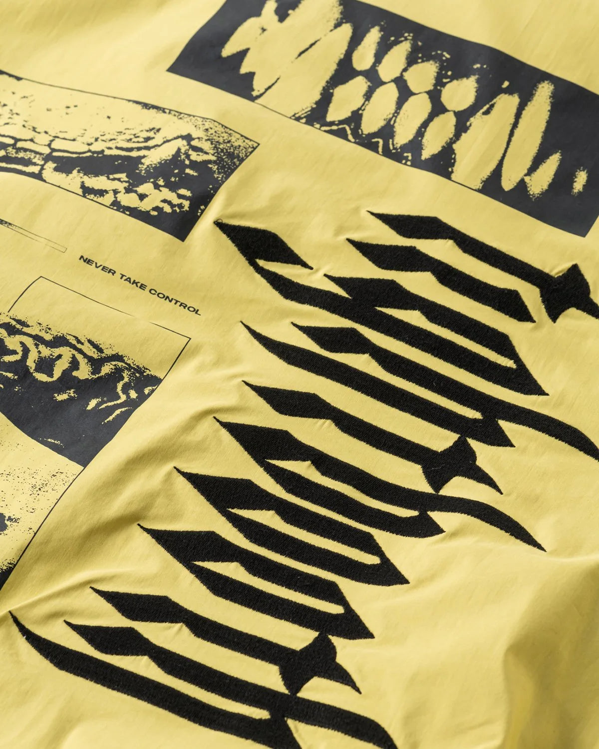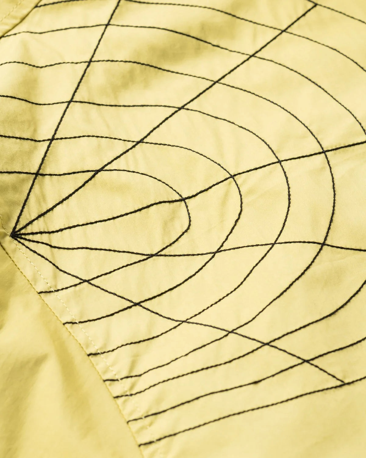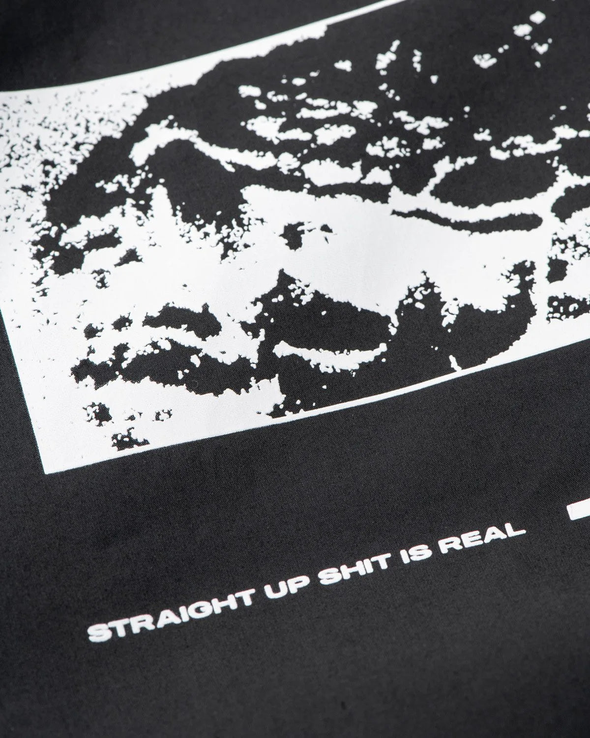 The front has a double zip design, with a logo embroidered on the left chest and a spider stitch design on the right shoulder.