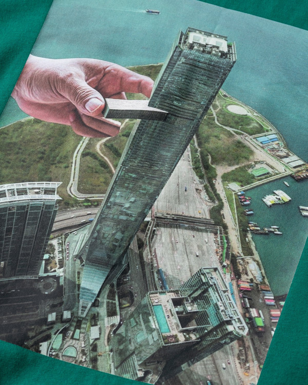 A T-shirt with artist Shusaku Takaoka's collage artwork silk-printed on the front.
