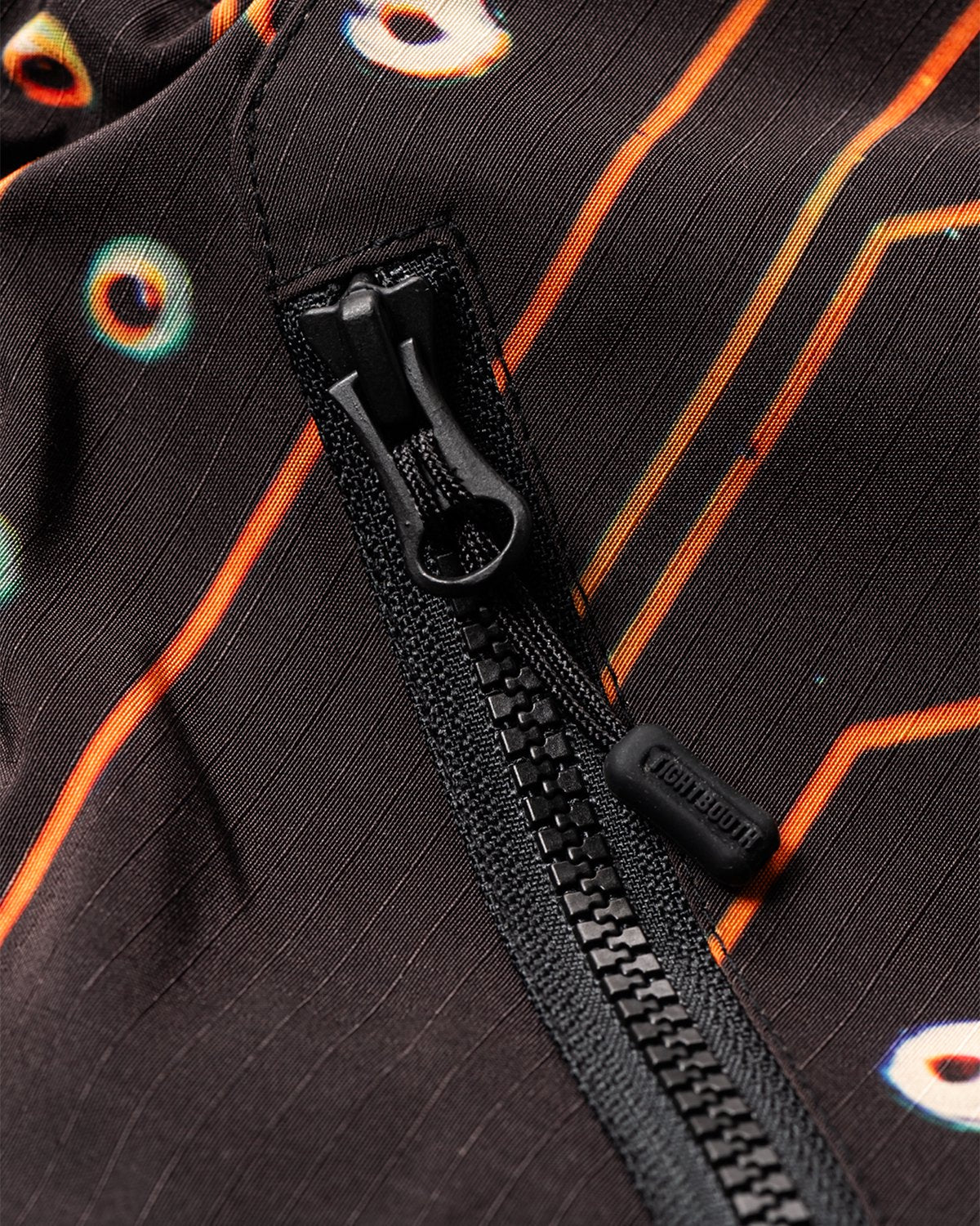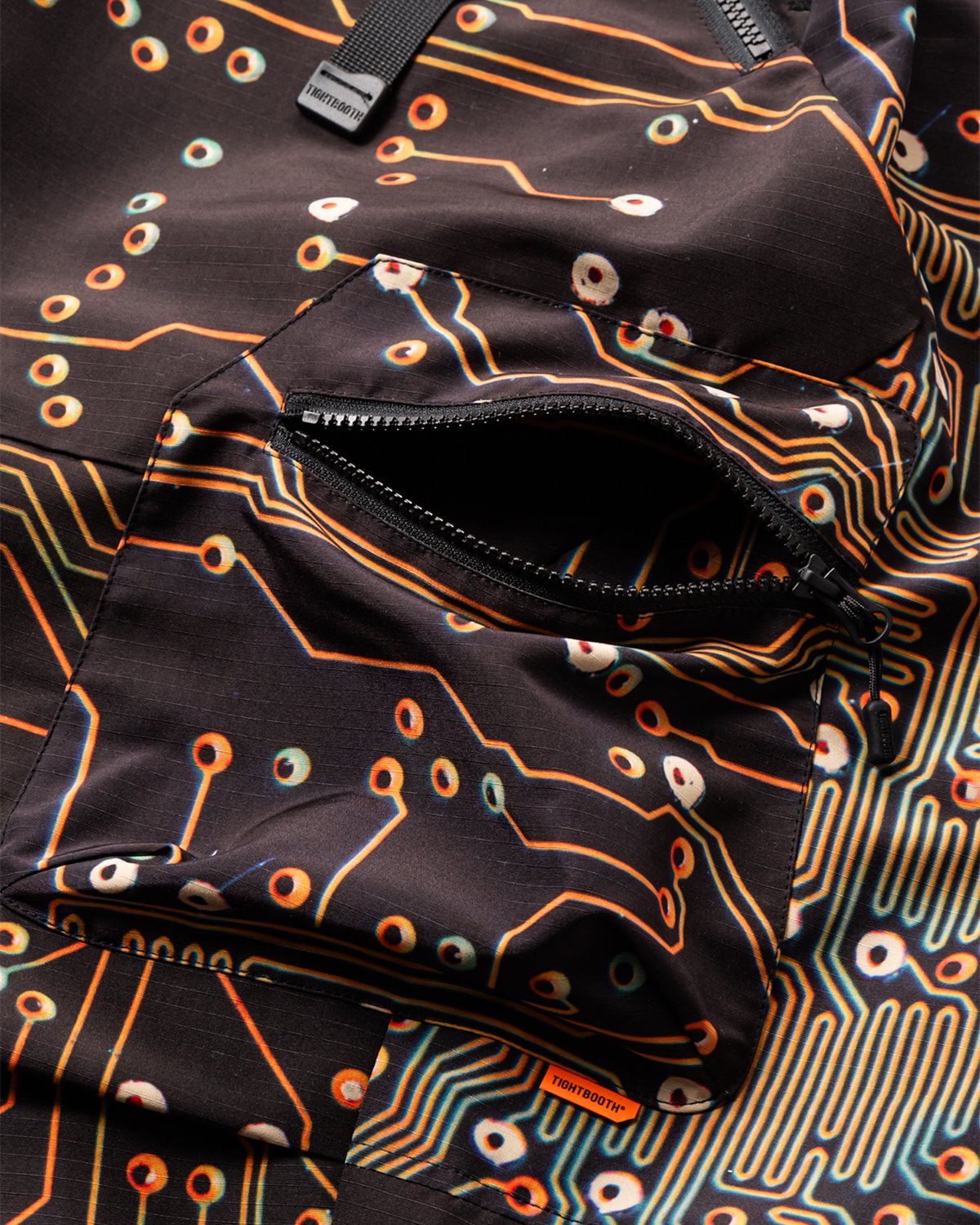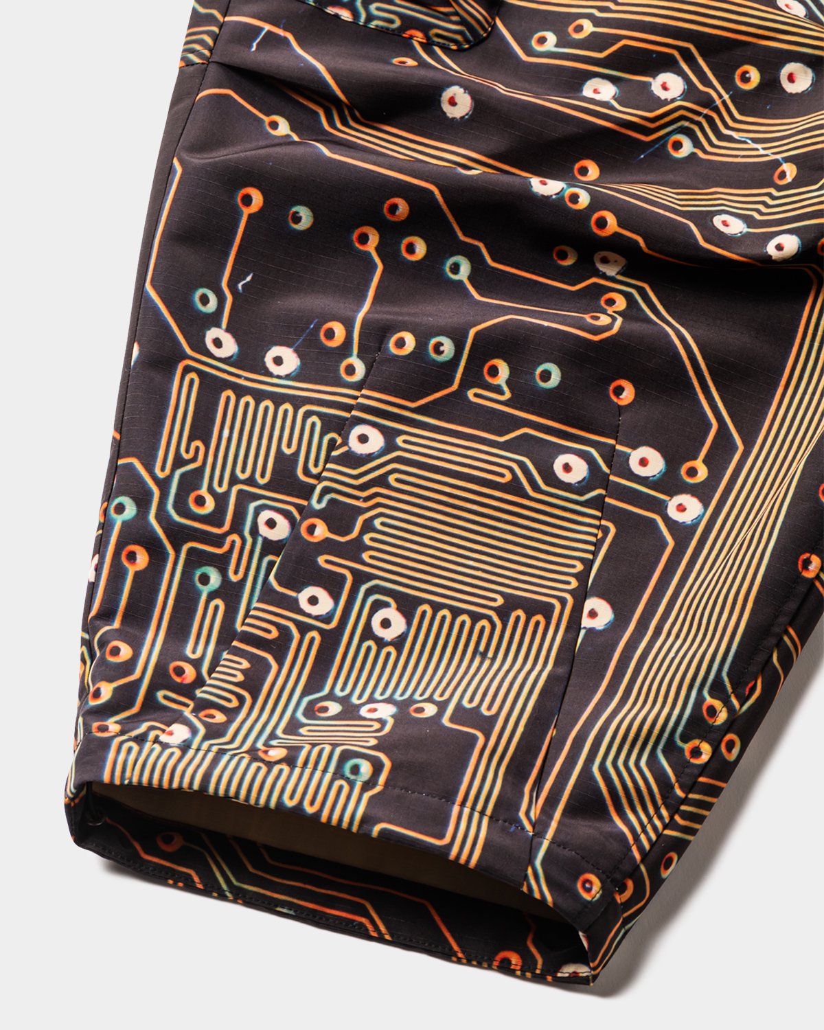 In addition to two solid colors, the design features an all-over semiconductor graphic pattern.