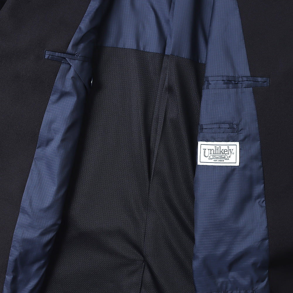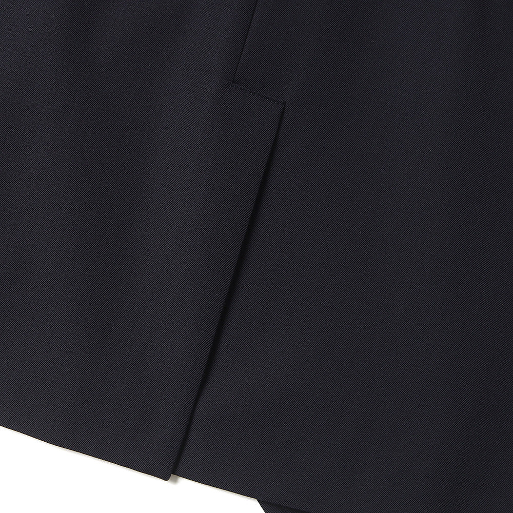Based on 60s sports coats with three patches and flaps, three-button notch lapel centre hook vents, it is combined with various elements such as the distinctive lapels symbolising the 70s, extremely low chest pockets and sloping shoulders to create a unique balance.
