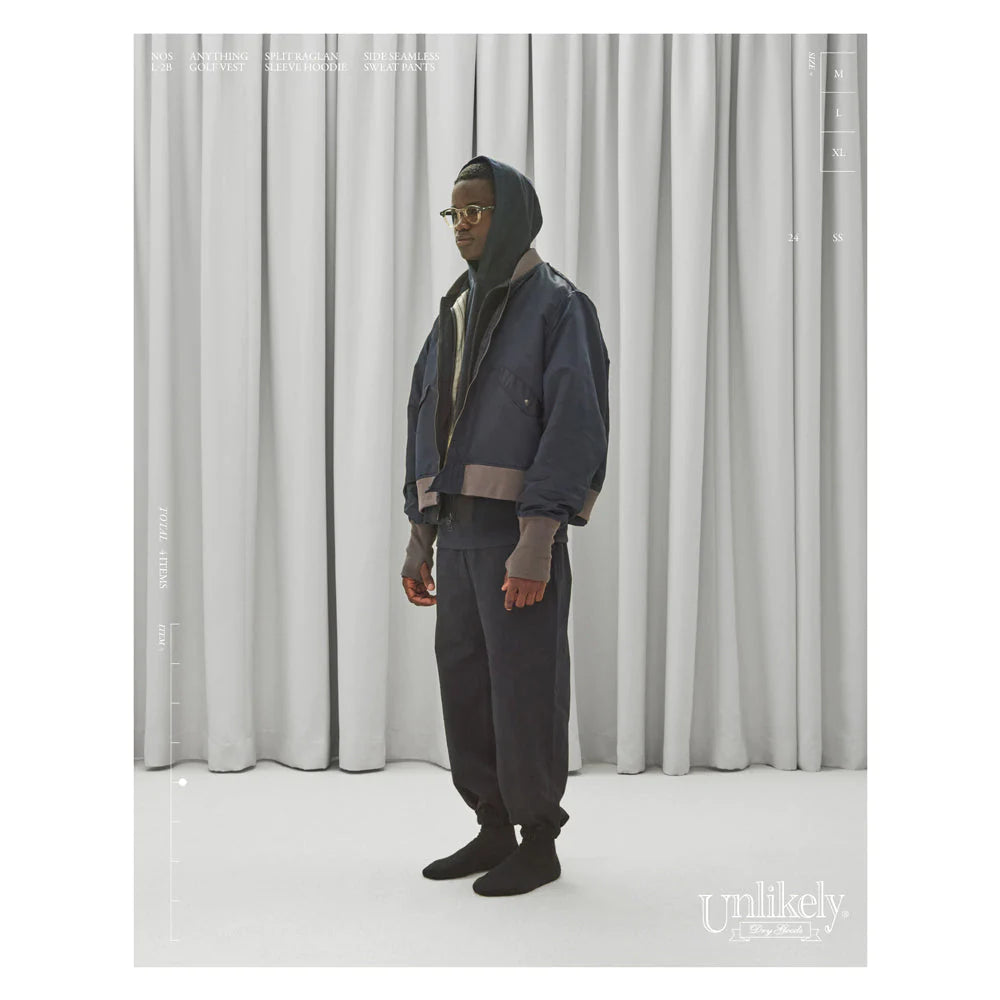 The sleeve ribs feature unusual turn-up hand warmer ribs.
