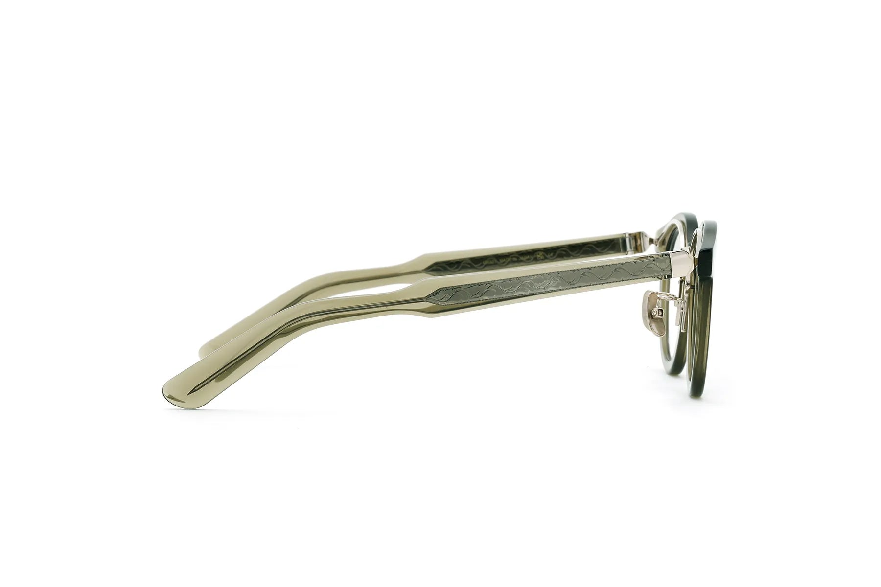 From the front, the glasses appear to be simple, voluminous panto-style cell frames, but the back of the front features YELLOWS PLUS's unique titanium back bar.