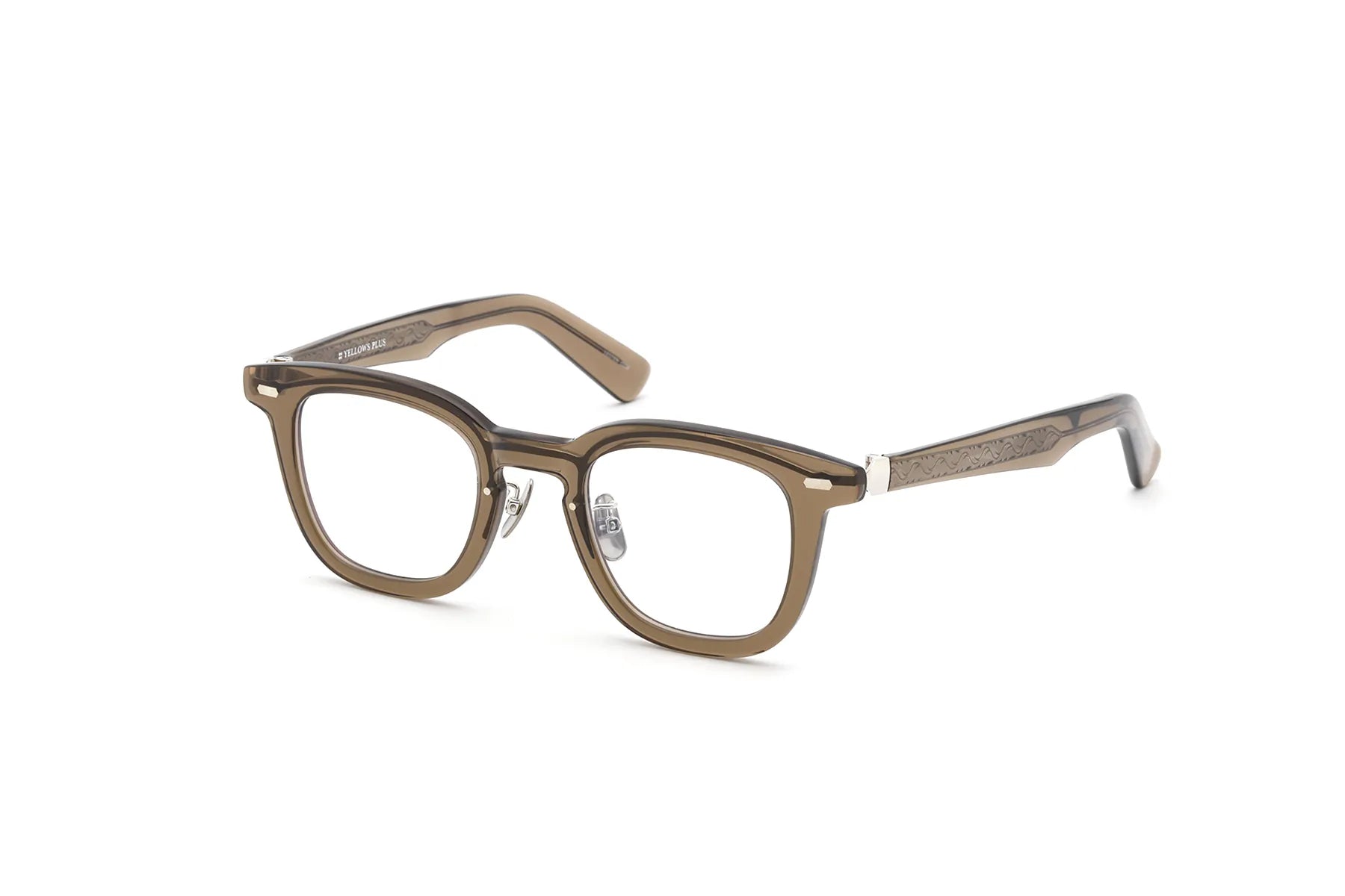 From the front, the glasses appear to be simple, voluminous Wellington-style cell frames, but the back of the front features YELLOWS PLUS's unique titanium back bar.