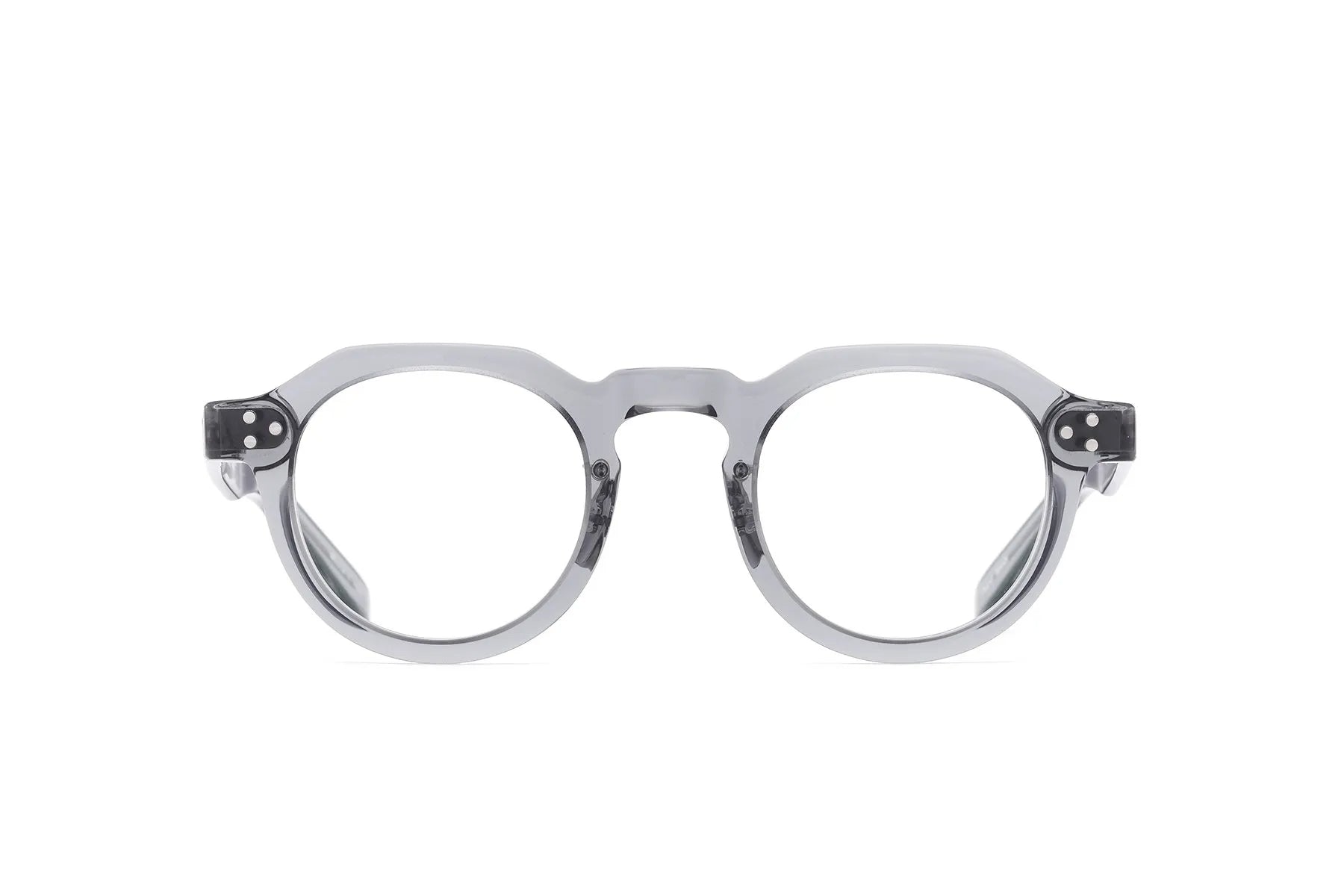 This latest model, a small, thick crown panto (a Boston-style frame with an edge at the top), fully conveys that vibe.