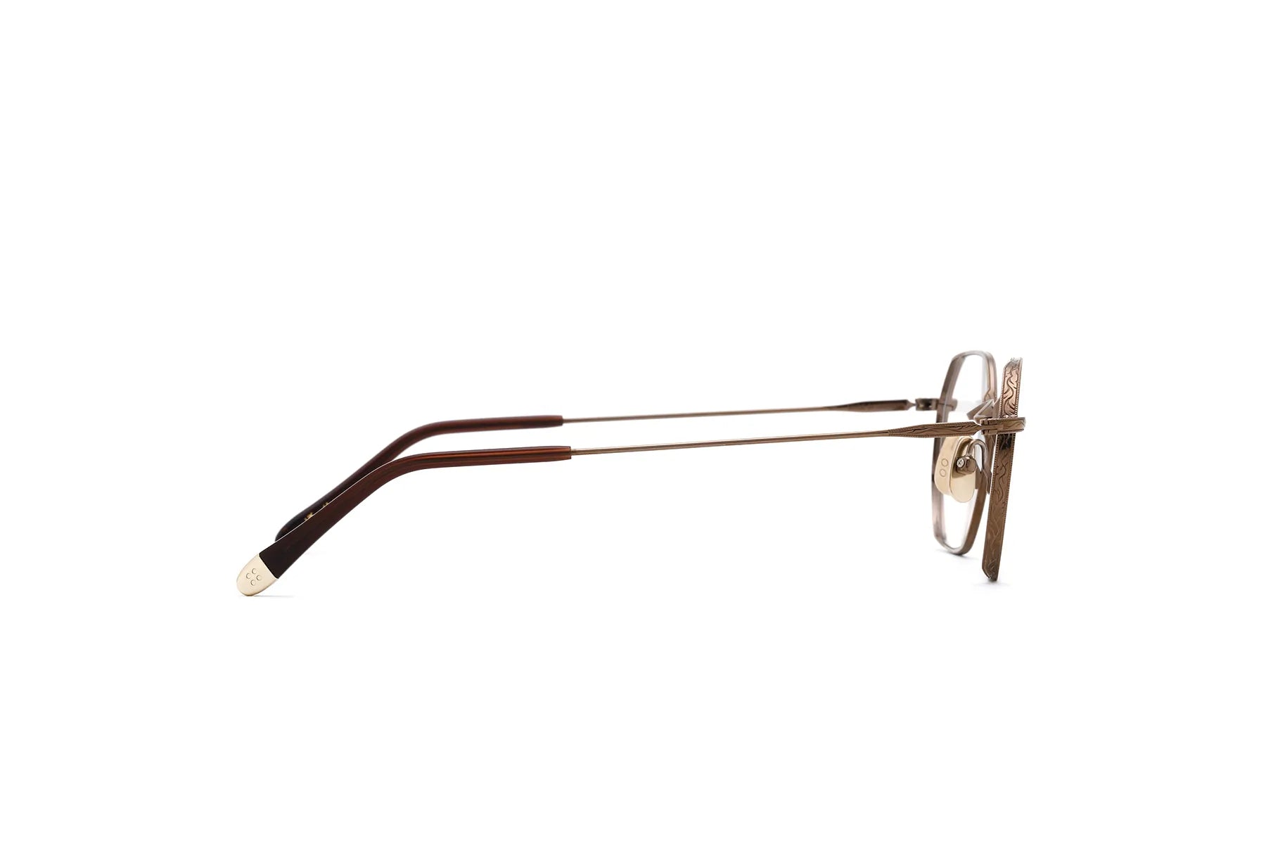 From the front, the frame appears to be a standard octagonal metal frame, but the specially designed rim with depth is decorated with a delicate engraved pattern, and matching engraved patterns are also featured on parts of the temples, giving the frame a luxurious feel when viewed from the side. A typical YELLOWS PLUS pair of glasses that does not overly emphasize its decorativeness. Made from titanium, it is lightweight and has an excellent fit.